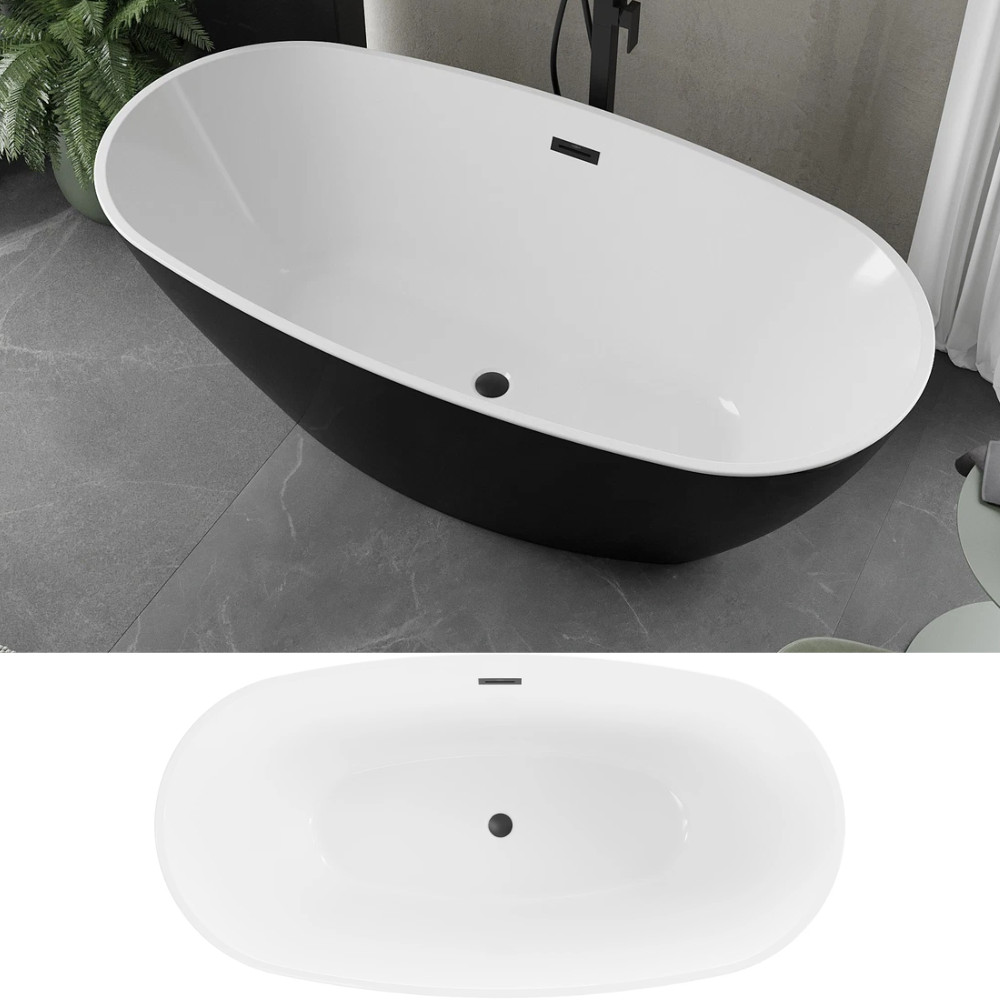 Aurora Black&White ovális térben álló akril kád, 170 cm hosszú