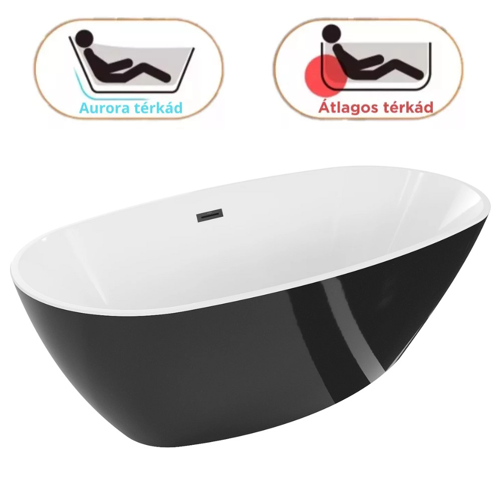 HD Aurora Black&White 170x75 ovális térben álló akril kád matt fekete túlfolyóval és click-clack leeresztővel