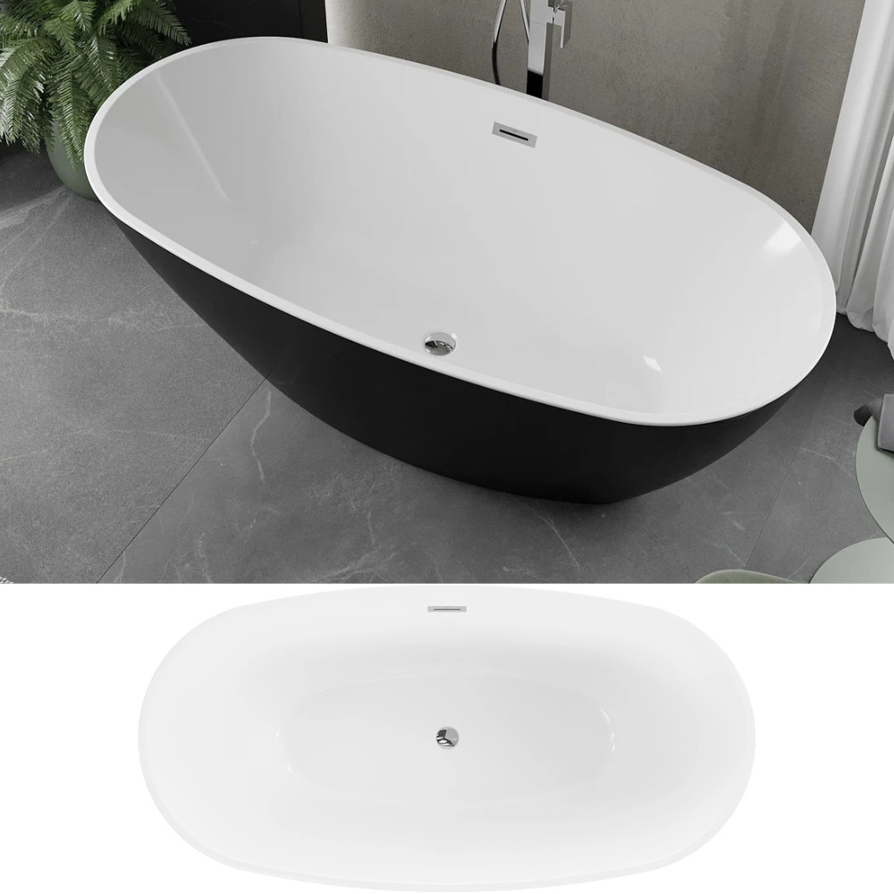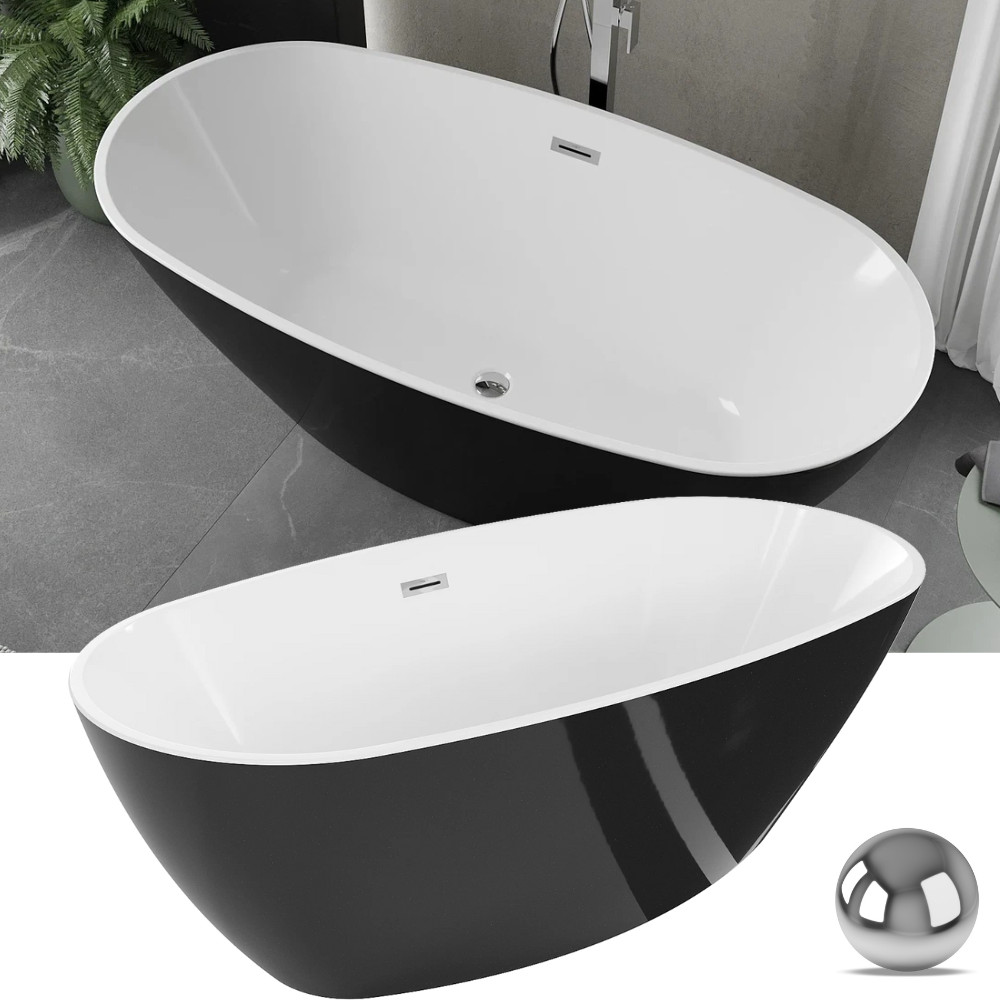 HD Aurora Black&White 160x75 ovális térben álló akril kád fényes króm túlfolyóval és click-clack leeresztővel