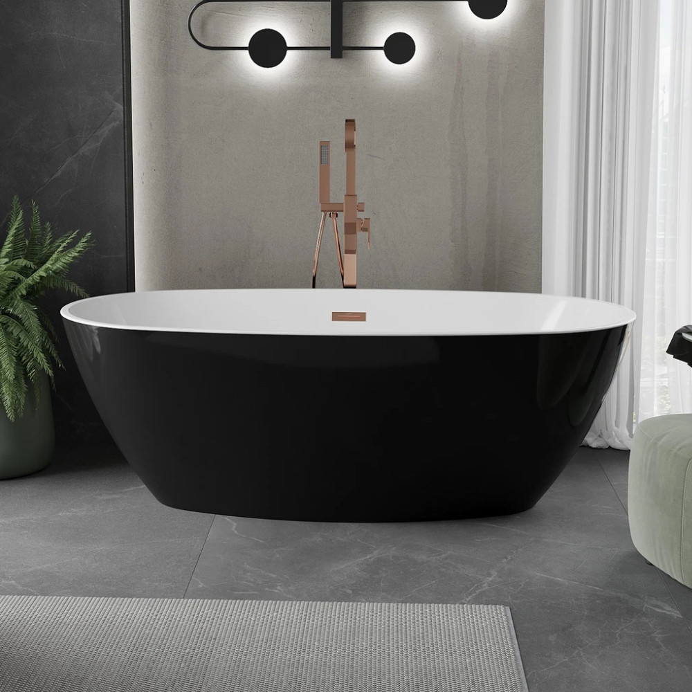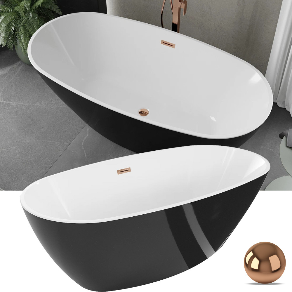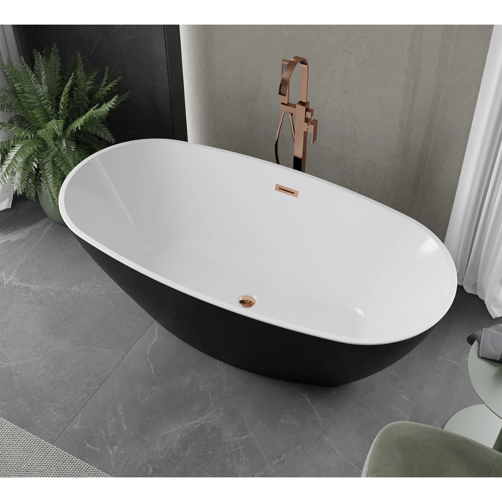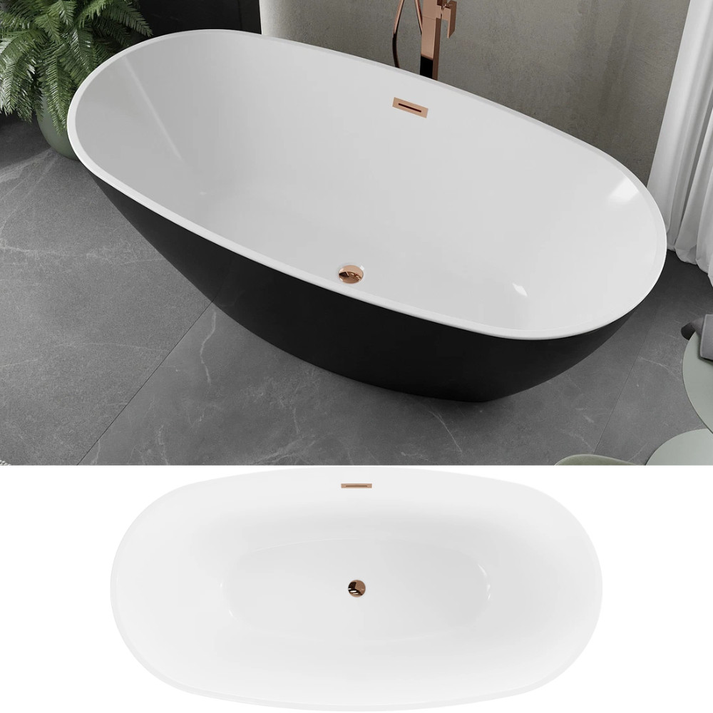 Aurora Black&White ovális térben álló akril kád, 160 cm hosszú, rózsa arany elemekkel