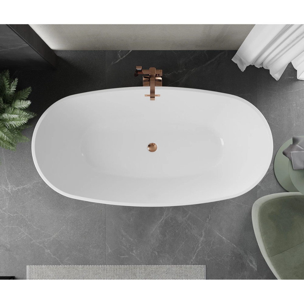Aurora Black&White ovális térben álló akril kád, 170 cm hosszú, rózsa arany elemekkel
