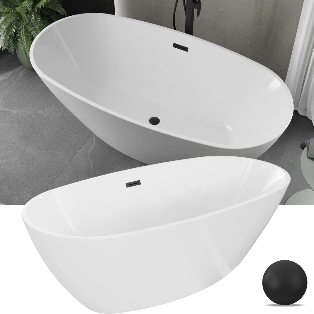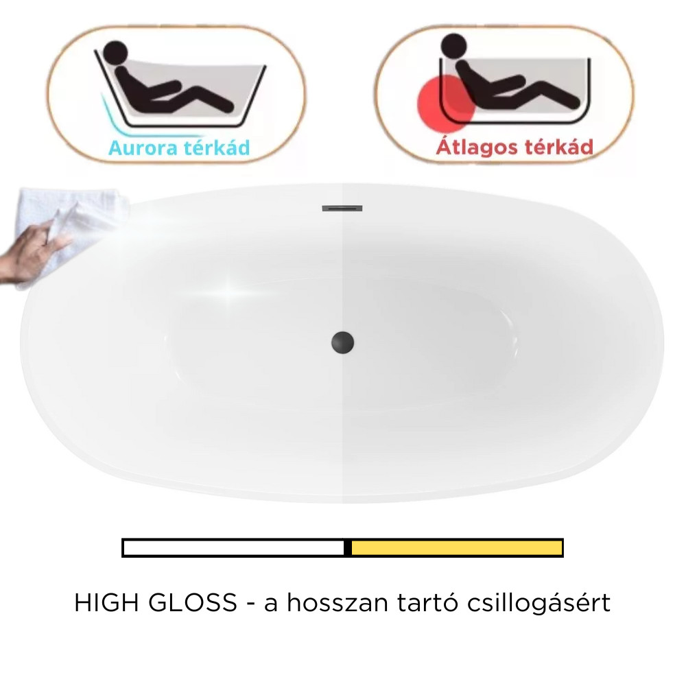 HD Aurora White 160x75 ovális térben álló akril kád matt fekete túlfolyóval és click-clack leeresztővel