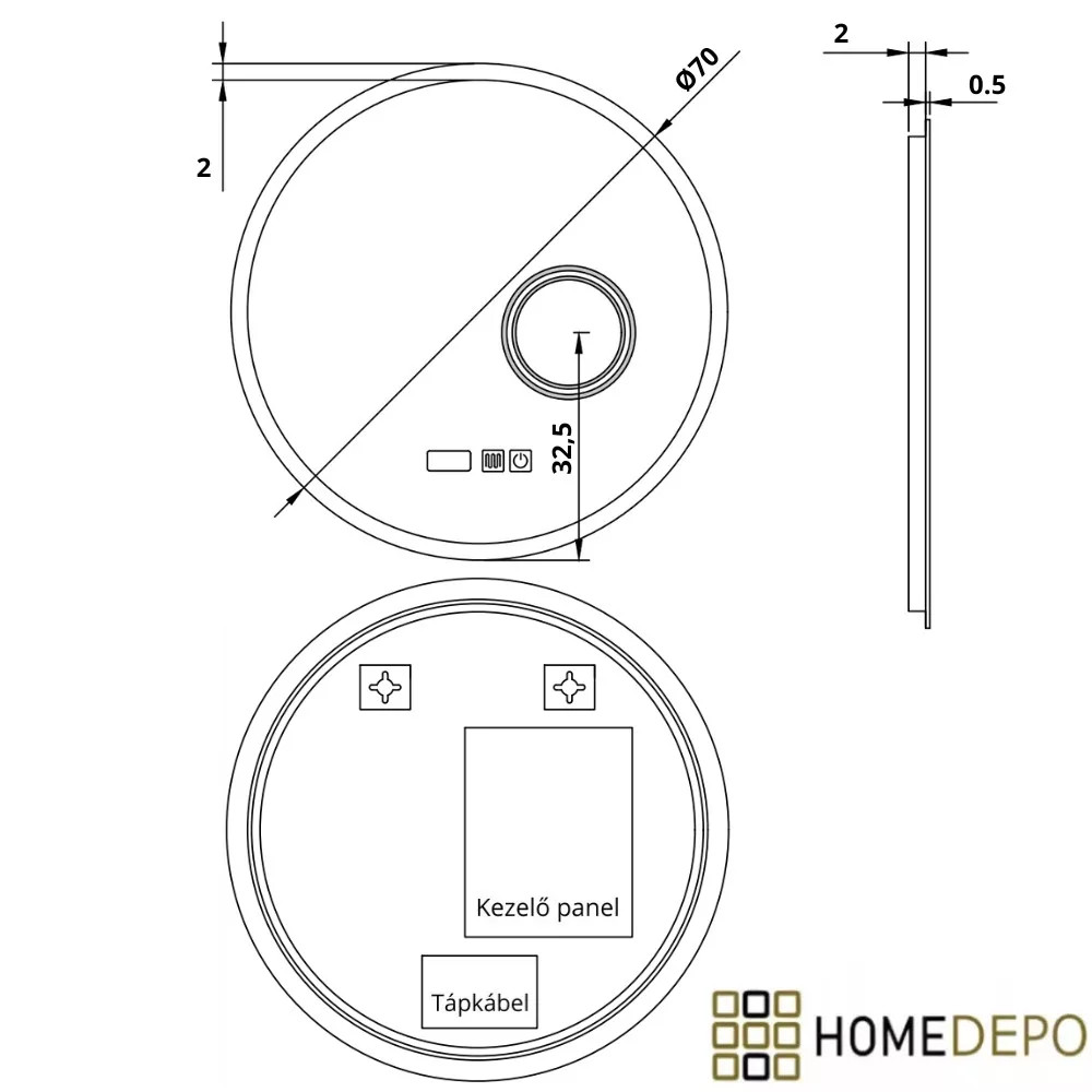 - Tükör funkciók: Kozmetikai tükör, ambient világítás, érintés kapcsoló, digitális óra, páramentesítő fűtés