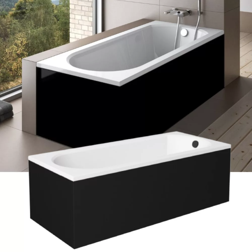 Besco Intrica egyenes akril kád matt fekete elő- és oldallappal