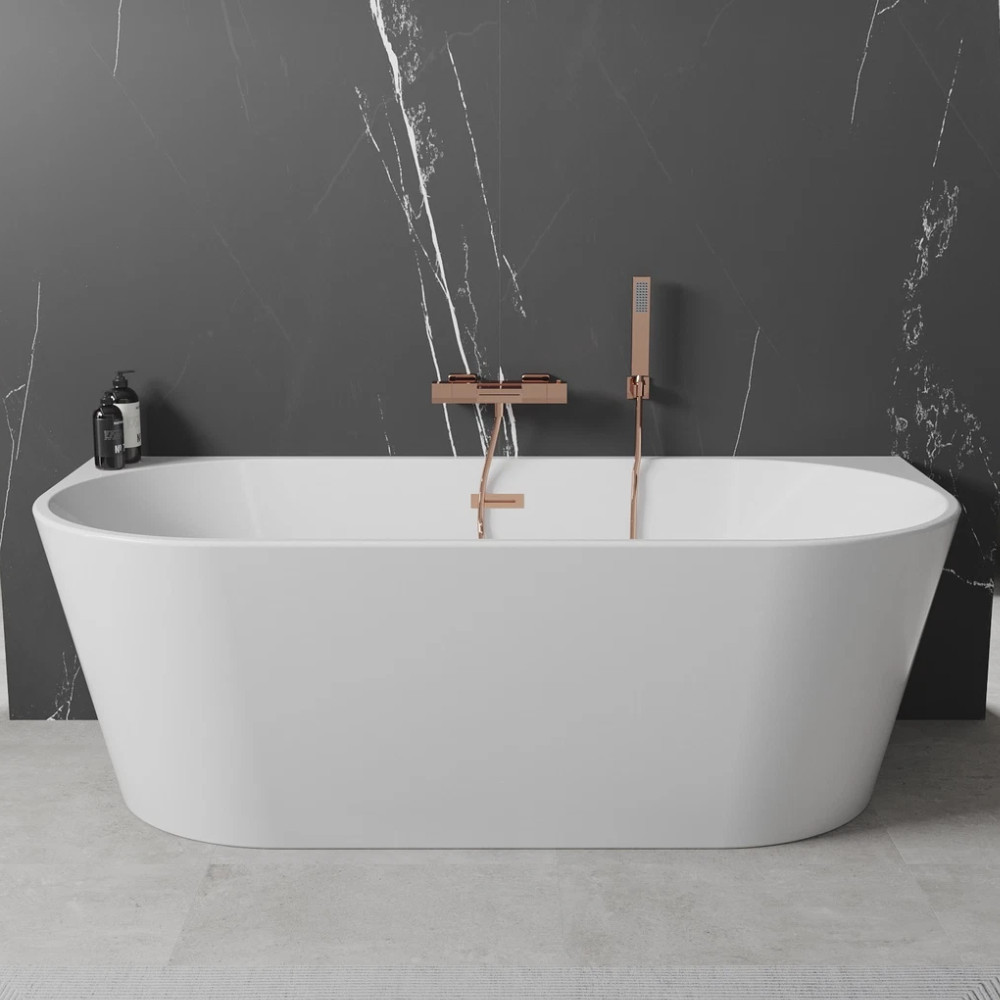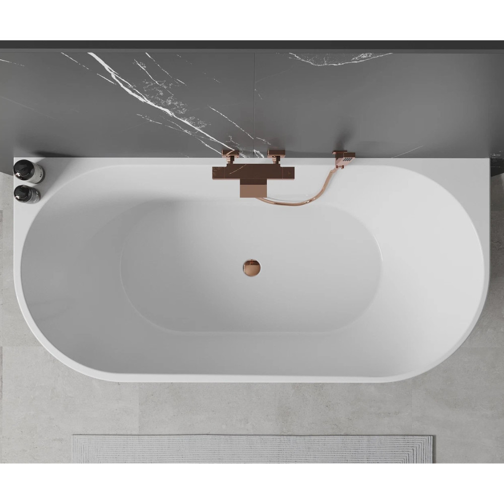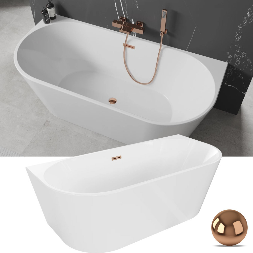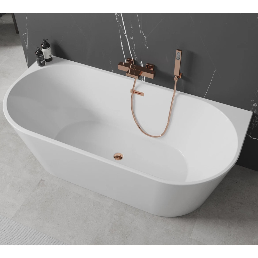 Florida White félszabadonálló akril kád, 160 cm hosszú, rózsa arany elemekkel
