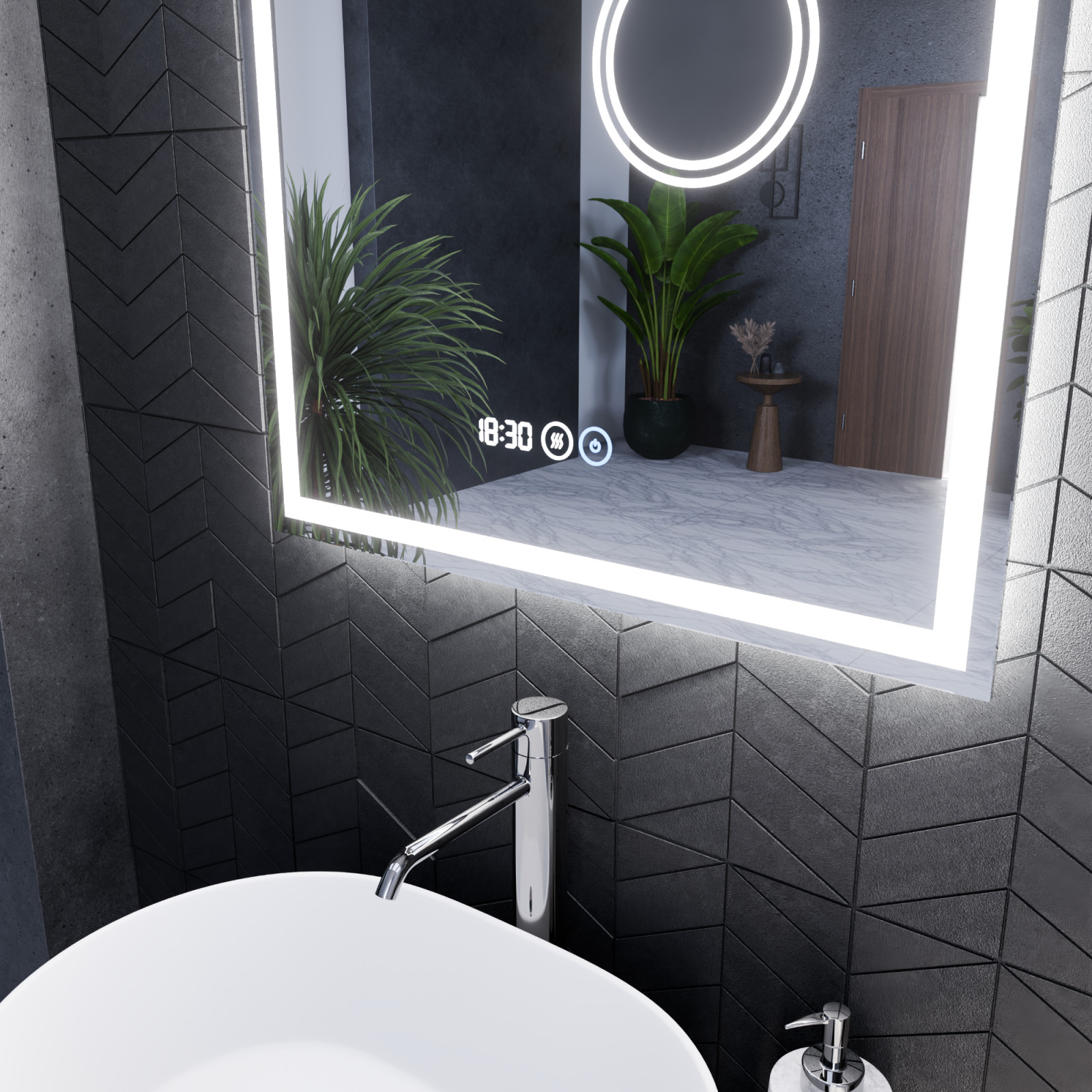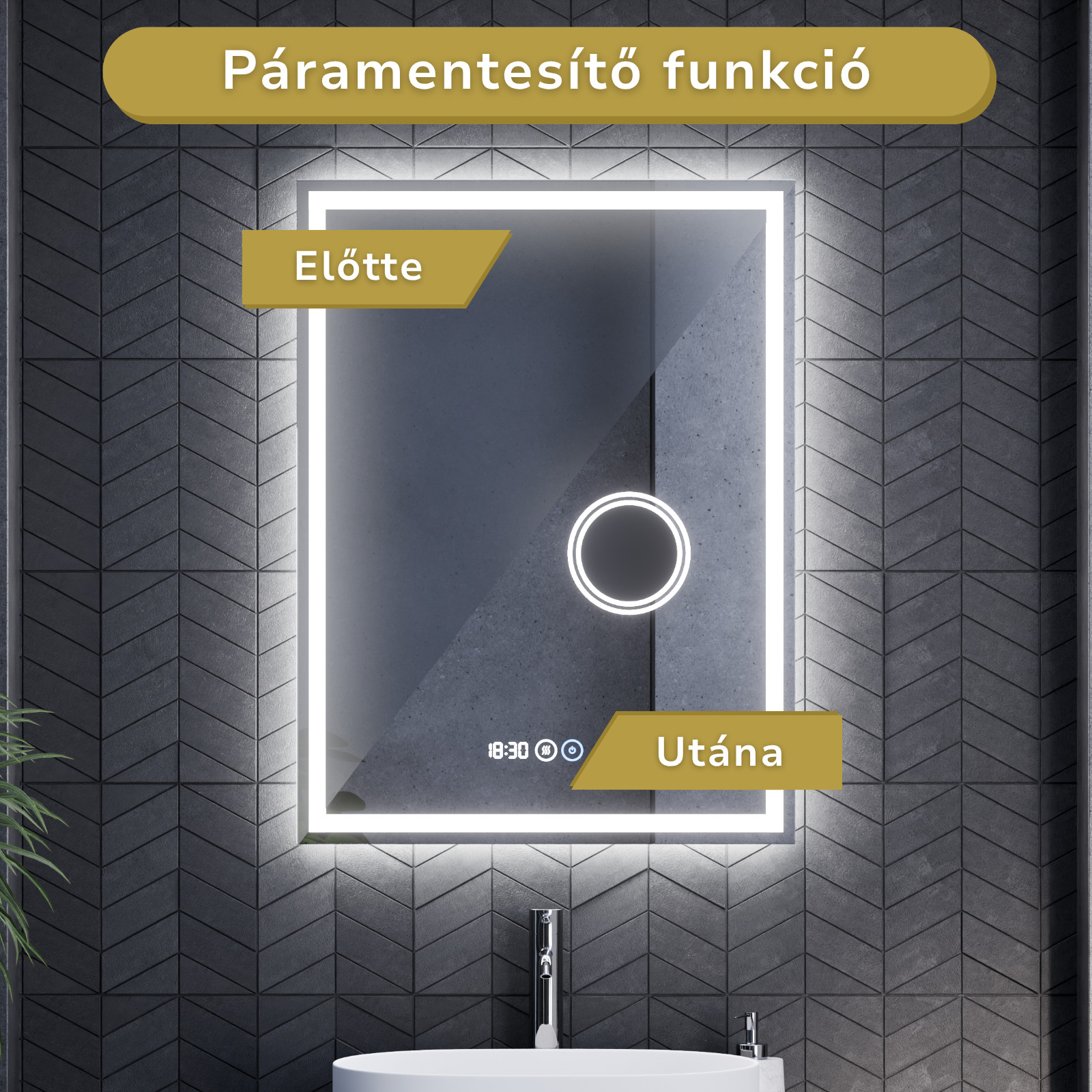 - Tükör funkciók: Kozmetikai tükör, ambient világítás, érintés kapcsoló, digitális óra, páramentesítő fűtés