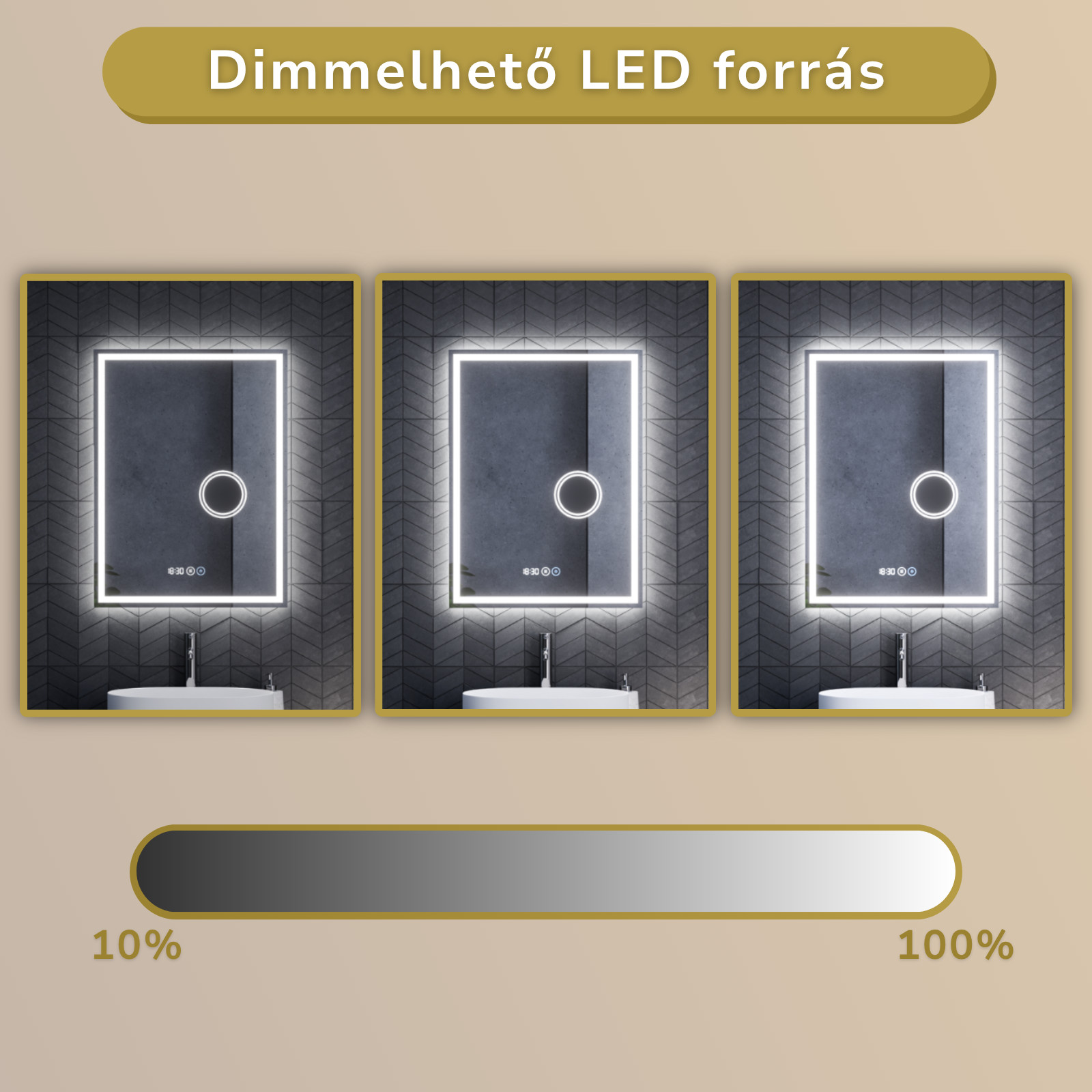A tükör LED világítással rendelkezik, amely 3 féle színhőmérsékletet biztosít: meleg, semleges és hideg fehér.