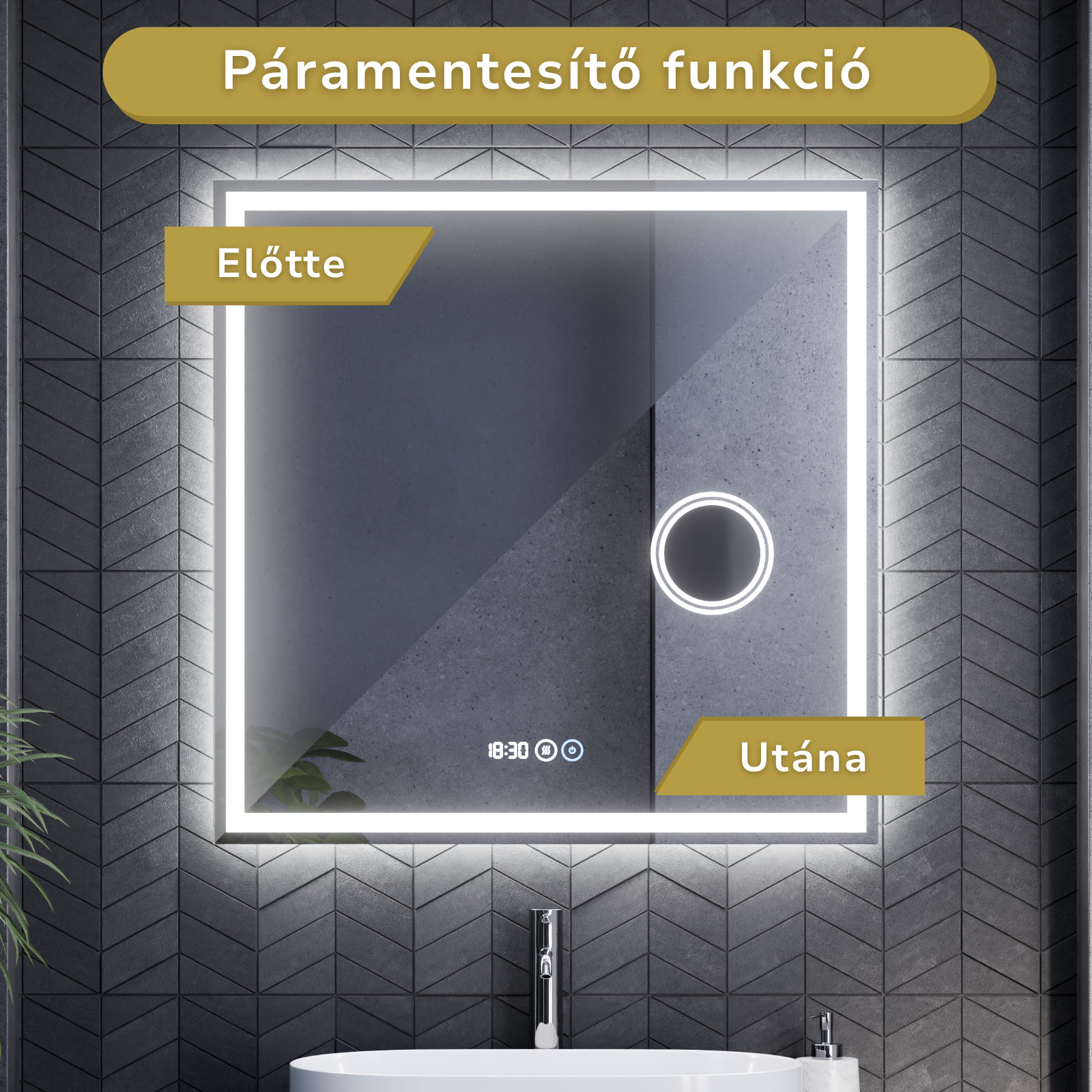 A tükör páramentesítő funkciója biztosítja, hogy a fürdőszoba használat során a keletkező párát eltávolítsa a tükör felületéről a teljes körű használat érdekében.