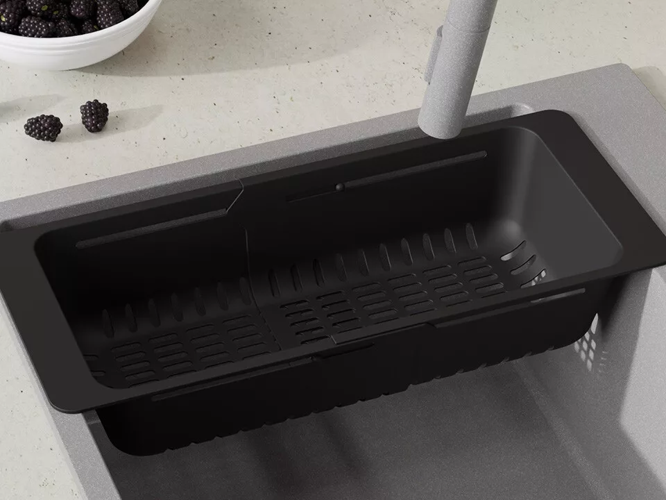 A kiváló minőségű, saját gyártású gyümölcsmosó kosár praktikus és higiénikus megoldást kínál a mindennapi konyhai előkészítési feladatokhoz. Szabadon állítható méretének köszönhetően rugalmasan illeszkedik különböző mosogatótálcákhoz, így stabil elhelyezést biztosít közvetlenül a medencében.