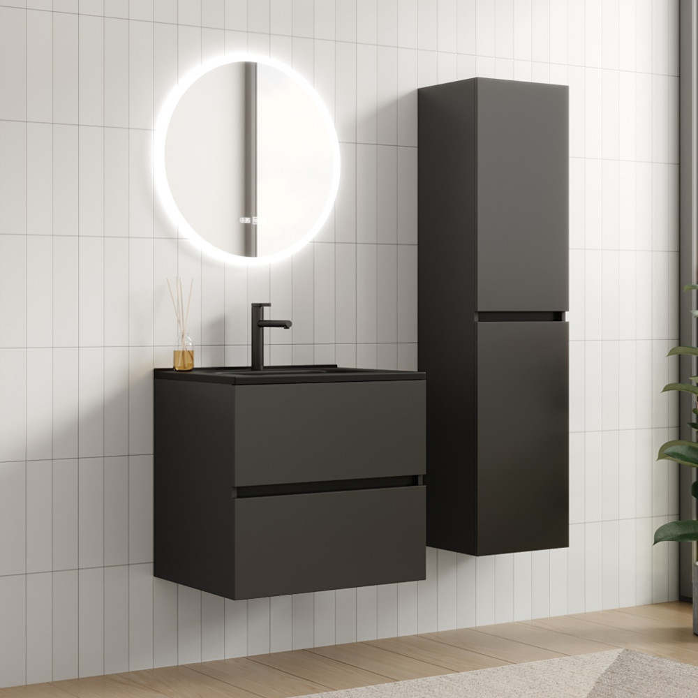 HD Aria Antracit 60 komplett fürdőszoba bútor fali mosdószekrénnyel, matt fekete slim mosdóval és tükörrel