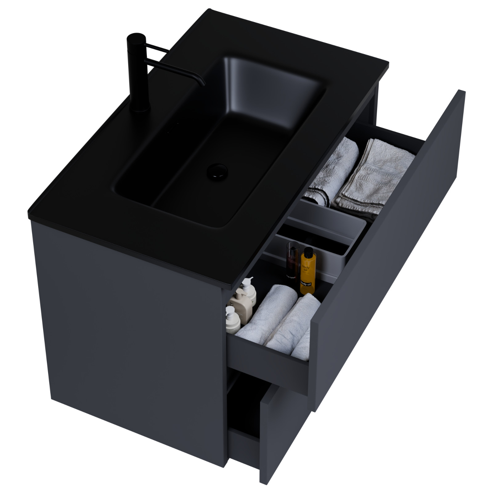 antracit mosdószekrény, teljes kihúzhatóságú fiókokkal
