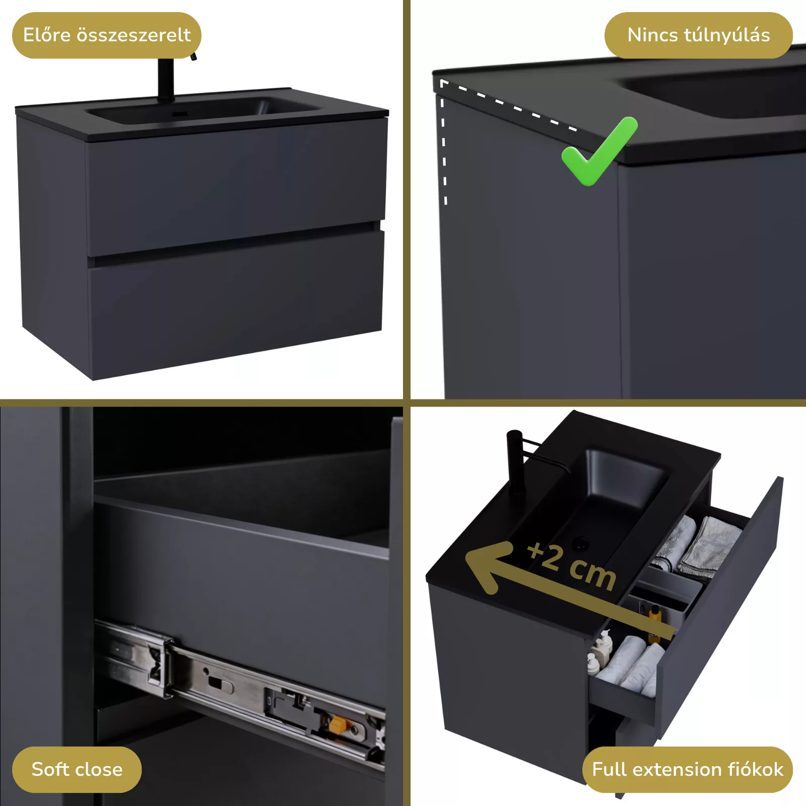 antracit mosdószekrény, teljes kihúzhatóságú fiókokkal