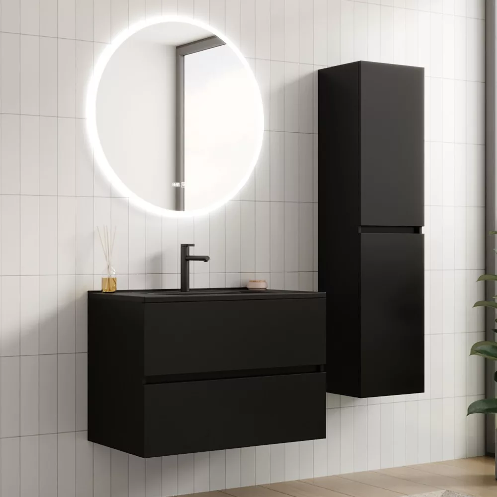 HD Aria Black 80 komplett fürdőszoba bútor fali mosdószekrénnyel, matt fekete slim mosdóval és tükörrel