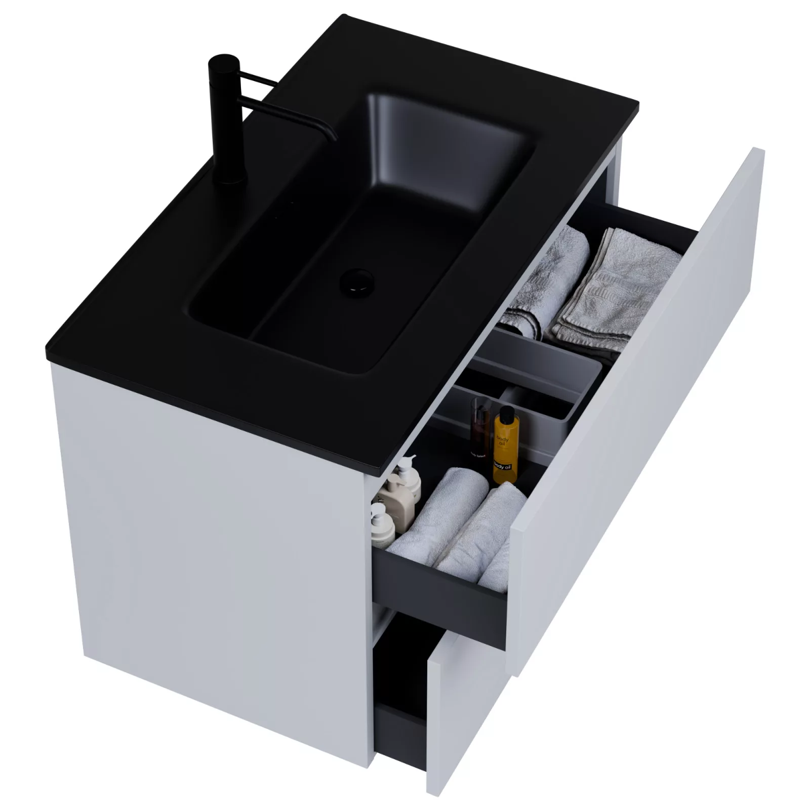 Napjainkban a praktikum mellett a fürdőszoba esztétikus megjelenése is fontos szempont. A függesztett bútorok egyre elterjedtebbé válnak, mivel számos előnnyel rendelkeznek, ide sorolható a modern, könnyed megjelenés és az egyszerű tisztítás. A függesztett fürdőszobai bútorok a klasszikus és modernebb stílusú fürdőszobákban is megállják a helyüket egyaránt. Nagyfokú rugalmasság jellemzi őket, mivel szinte bárhol elhelyezhetők a fürdőszobán belül. További előnyük, hogy soft close (csillapítós) zsanérral felszereltek, így  becsukáskor az ajtó vagy fiók finoman záródik be, csökkentve a terhelést és növelve az élettartamot. A szekrény fehér és matt fekete mosdóval, illetve mosdópulttal is szabadon kombinálható ízlés szerint. A teljesség érdekében a mosdószekrényekhez illő LED okostükröt és magas szekrényt is választhatunk, hogy a fürdőszobában lévő bútorok egy szemet gyönyörködtető egységet alkossanak.