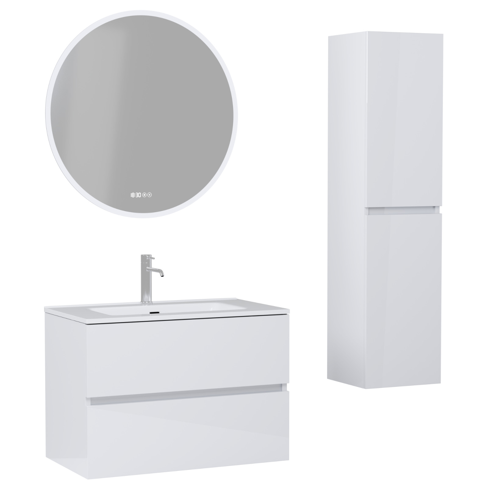 HD Aria Lacquer White 60/80/100/120 komplett fürdőszoba bútor szett fali mosdószekrénnyel, tükörrel és magasszekrénnyel