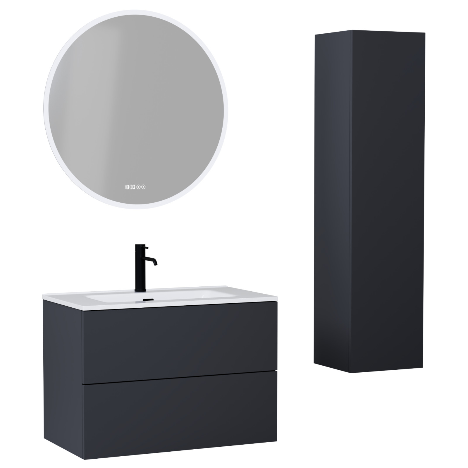 HD Aria Pro Antracit 60 komplett fürdőszoba bútor szett fali push-to-open mosdószekrénnyel, tükörrel és magasszekrénnyel