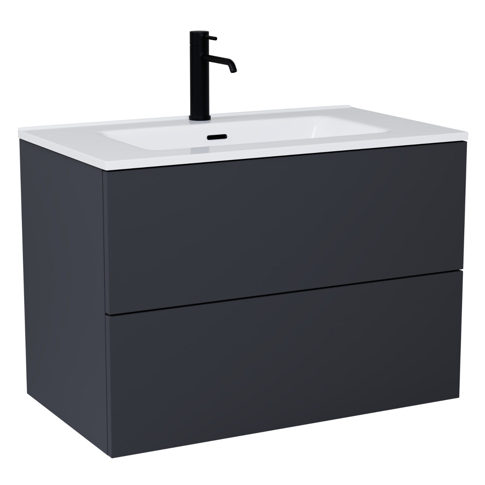HD Aria Pro Antracit 80 fali mosdószekrény, push-to-open mechanizmussal, fényes fehér slim mosdóval