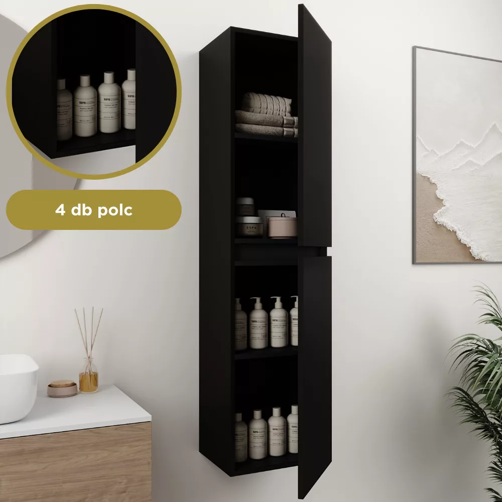 Napjainkban a praktikum mellett a fürdőszoba esztétikus megjelenése is fontos szempont. A függesztett bútorok egyre elterjedtebbé válnak, mivel számos előnnyel rendelkeznek, ide sorolható a modern, könnyed megjelenés és az egyszerű tisztítás . A függesztett fürdőszobai bútorok a klasszikus és modernebb stílusú fürdőszobákban is megállják a helyüket egyaránt. Nagyfokú rugalmasság jellemzi őket, mivel szinte bárhol elhelyezhetők a fürdőszobán belül. További előnyük, hogy soft close (csillapítós) zsanérral felszereltek, így becsukáskor az ajtó vagy fiók finoman záródik be, csökkentve a terhelést és növelve az élettartamot . A szekrény fehér és matt fekete mosdóval, illetve mosdópulttal is szabadon kombinálható ízlés szerint. A teljesség érdekében a mosdószekrényekhez illő LED okostükröt és magasszekrényt is választhatunk, hogy a fürdőszobában lévő bútorok egy szemet gyönyörködtető egységet alkossanak.