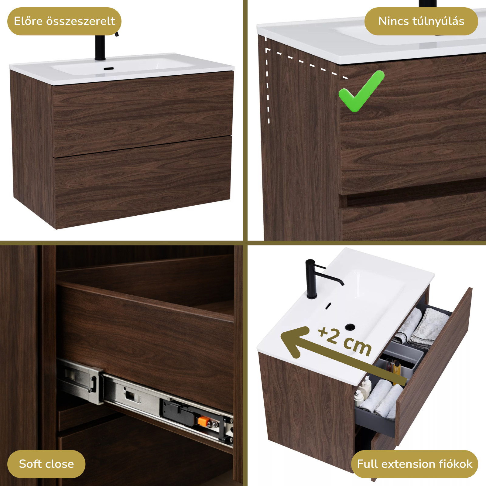A bútort összeszerelve szállítjuk ki, így Önnek csak a mosdót és a fiók frontot kell ráhelyeznie!