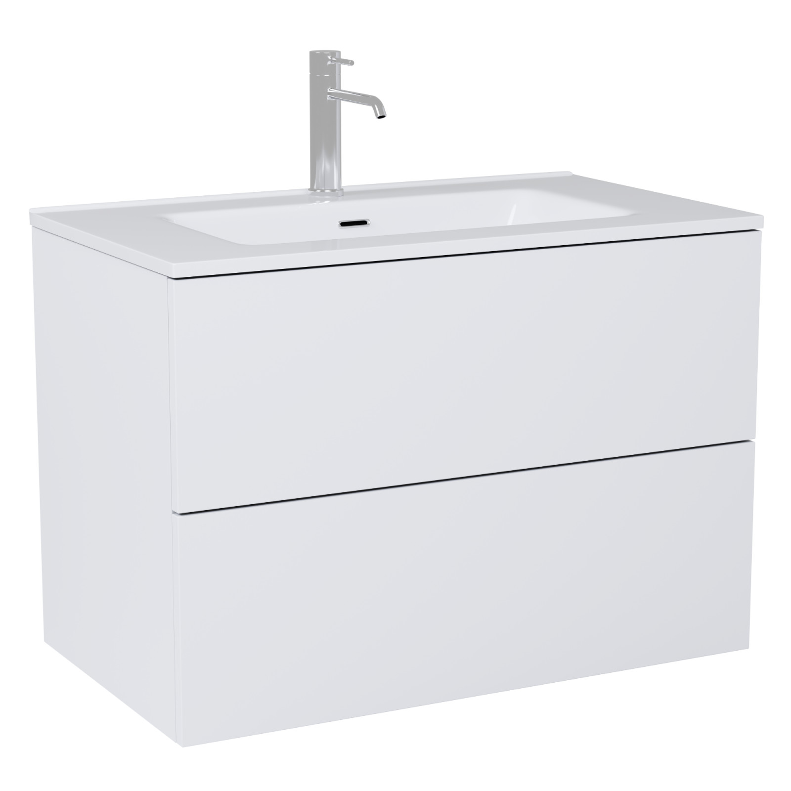 HD Aria Pro Silk Matt White 80 fali mosdószekrény, push-to-open mechanizmussal, fényes fehér slim mosdóval