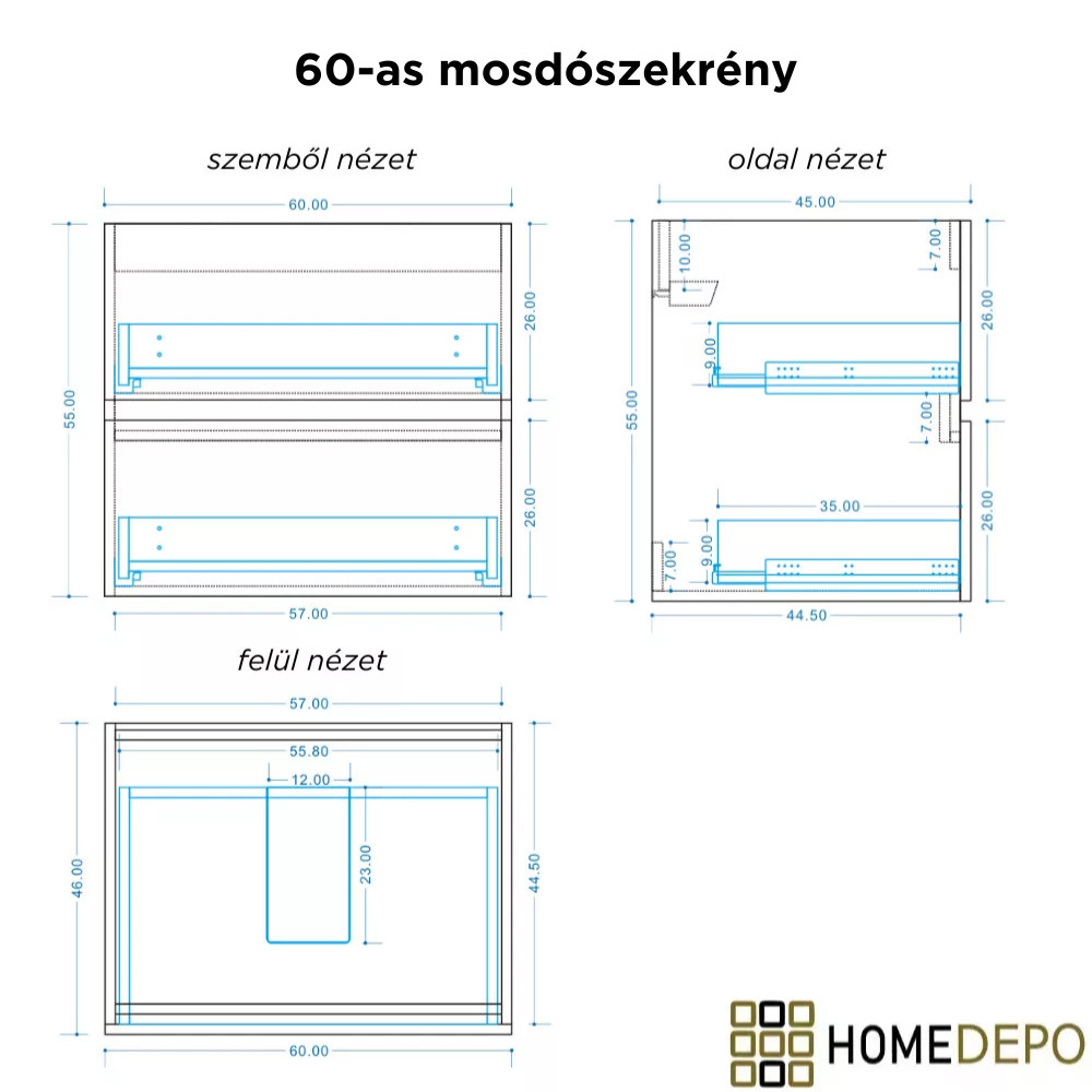 • Mosdószekrény méret: 60x55x46 cm