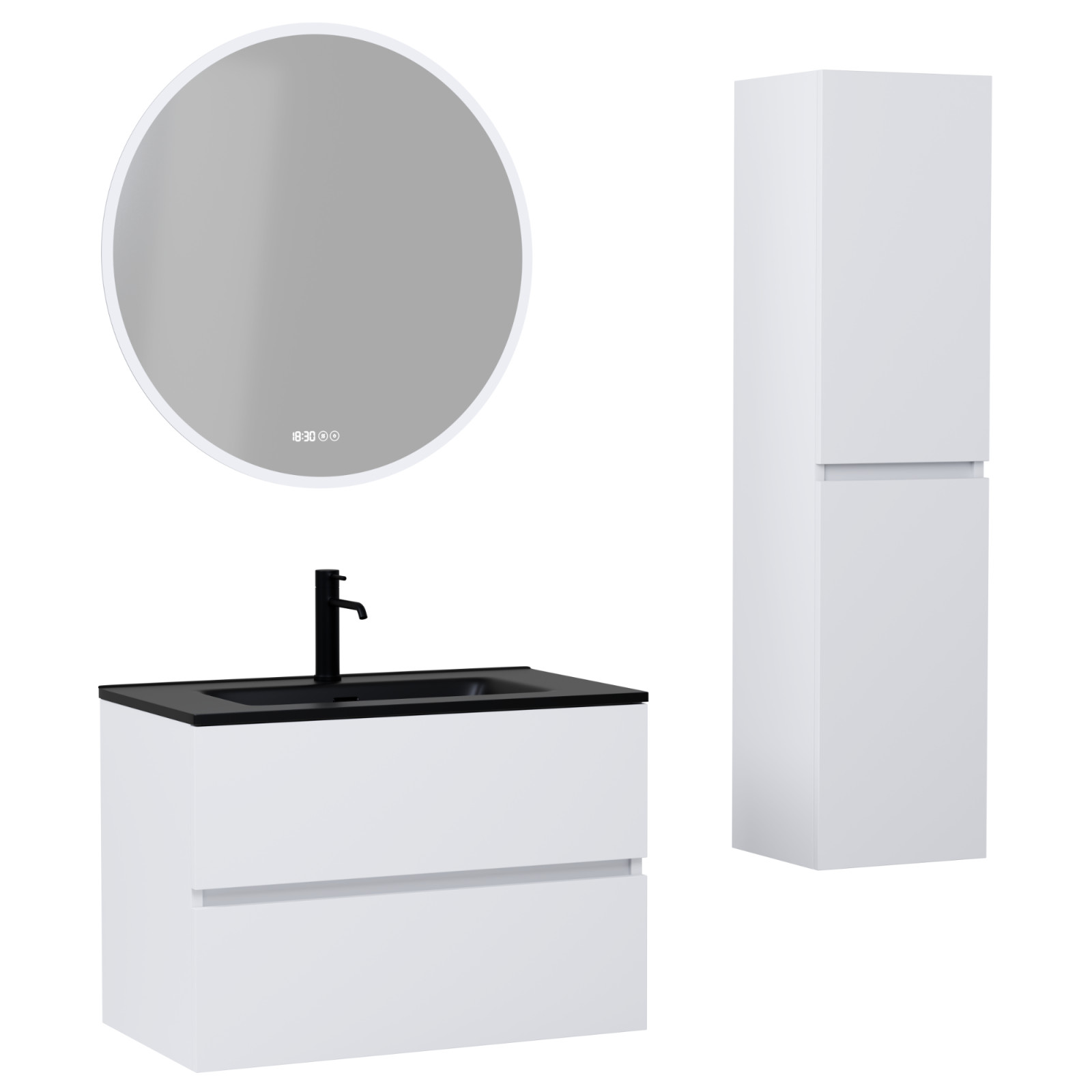 Napjainkban a praktikum mellett a fürdőszoba esztétikus megjelenése is fontos szempont. A függesztett bútorok egyre elterjedtebbé válnak, mivel számos előnnyel rendelkeznek, ide sorolható a modern, könnyed megjelenés és az egyszerű tisztítás . A függesztett fürdőszobai bútorok a klasszikus és modernebb stílusú fürdőszobákban is megállják a helyüket egyaránt. Nagyfokú rugalmasság jellemzi őket, mivel szinte bárhol elhelyezhetők a fürdőszobán belül. További előnyük, hogy soft close (csillapítós) zsanérral felszereltek, így becsukáskor az ajtó vagy fiók finoman záródik be, csökkentve a terhelést és növelve az élettartamot . A szekrény fehér és matt fekete mosdóval, illetve mosdópulttal is szabadon kombinálható ízlés szerint. A teljesség érdekében a mosdószekrényekhez illő LED okostükröt és magasszekrényt is választhatunk, hogy a fürdőszobában lévő bútorok egy szemet gyönyörködtető egységet alkossanak.