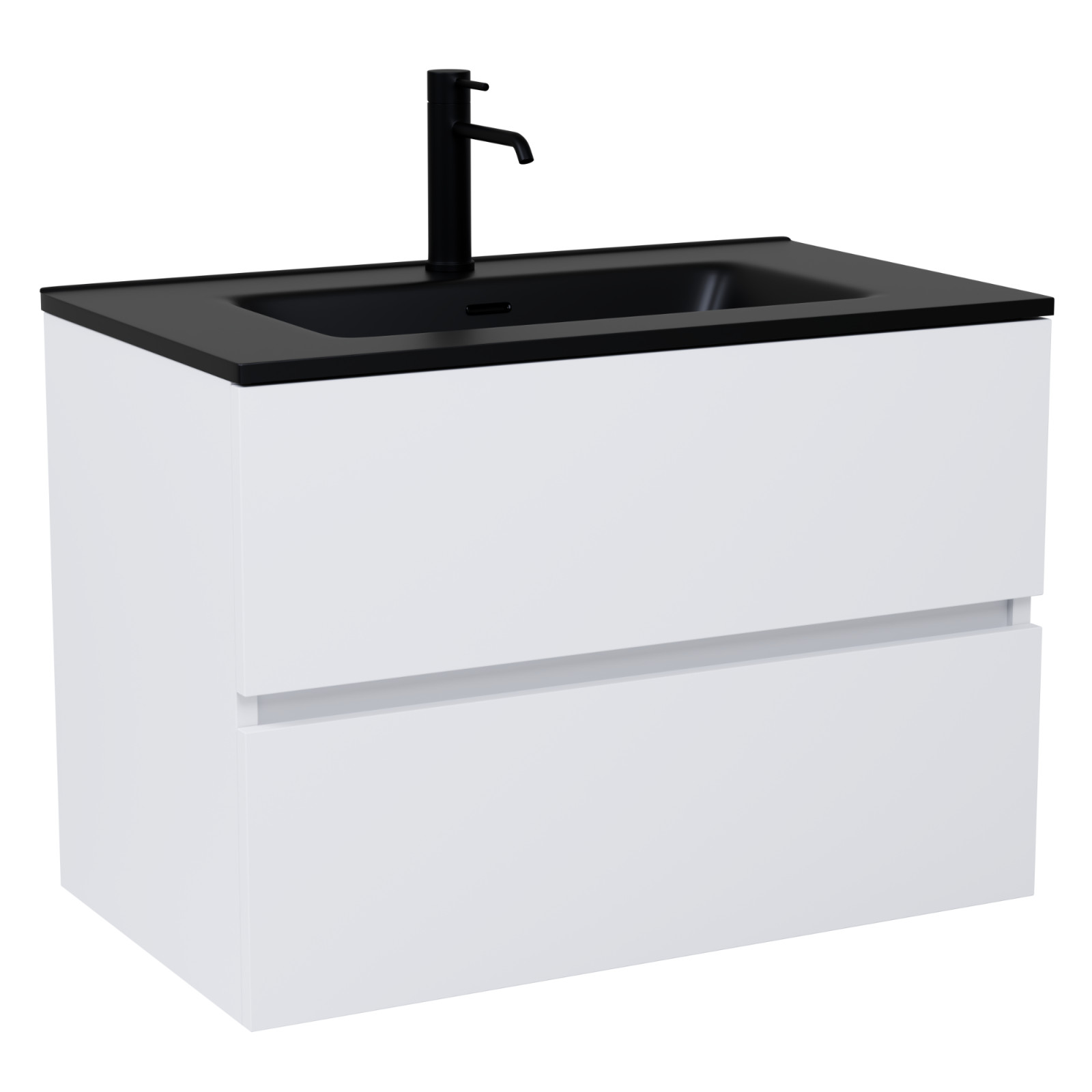 selymes matt fehér mosdószekrény, teljes kihúzhatóságú fiókokkal