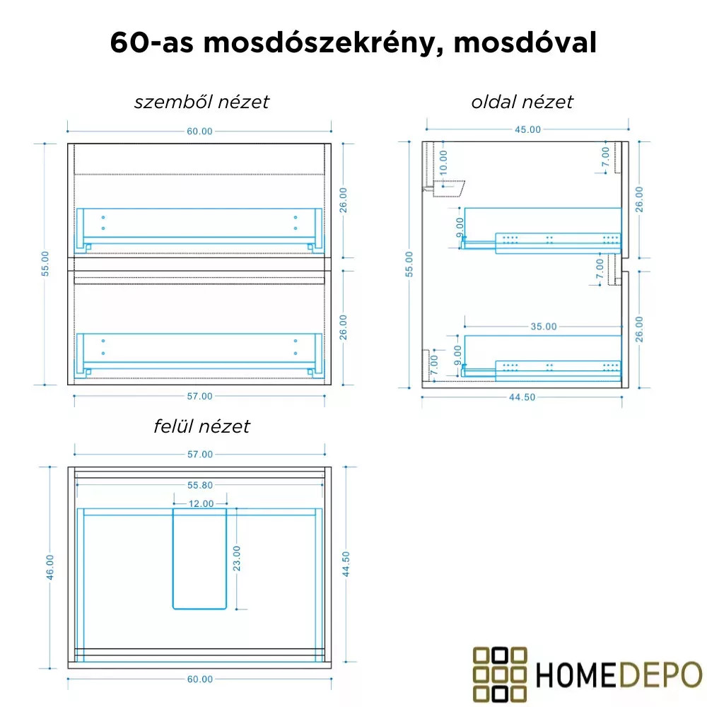 A bútor előre összerelt állapotban szállítjuk, így Önnek nincs más teendője már vele, csak fel kell rögzíteni a falra és fehelyezni a mosdót, illetve a fiók frontot.
