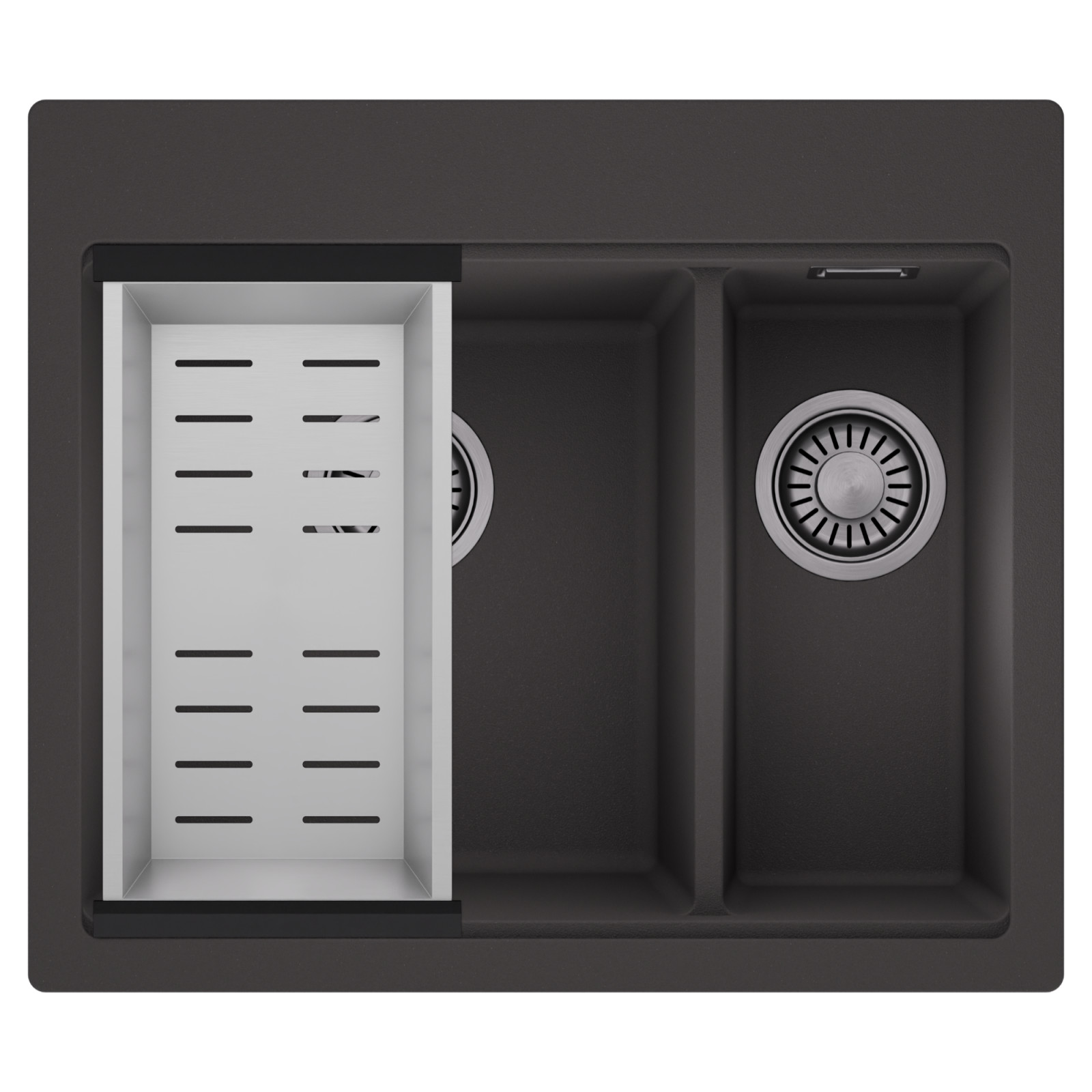 HD Aspen 58 Kétmedencés mosogatótálca szett, csepegtetőkosárral, matt antracit