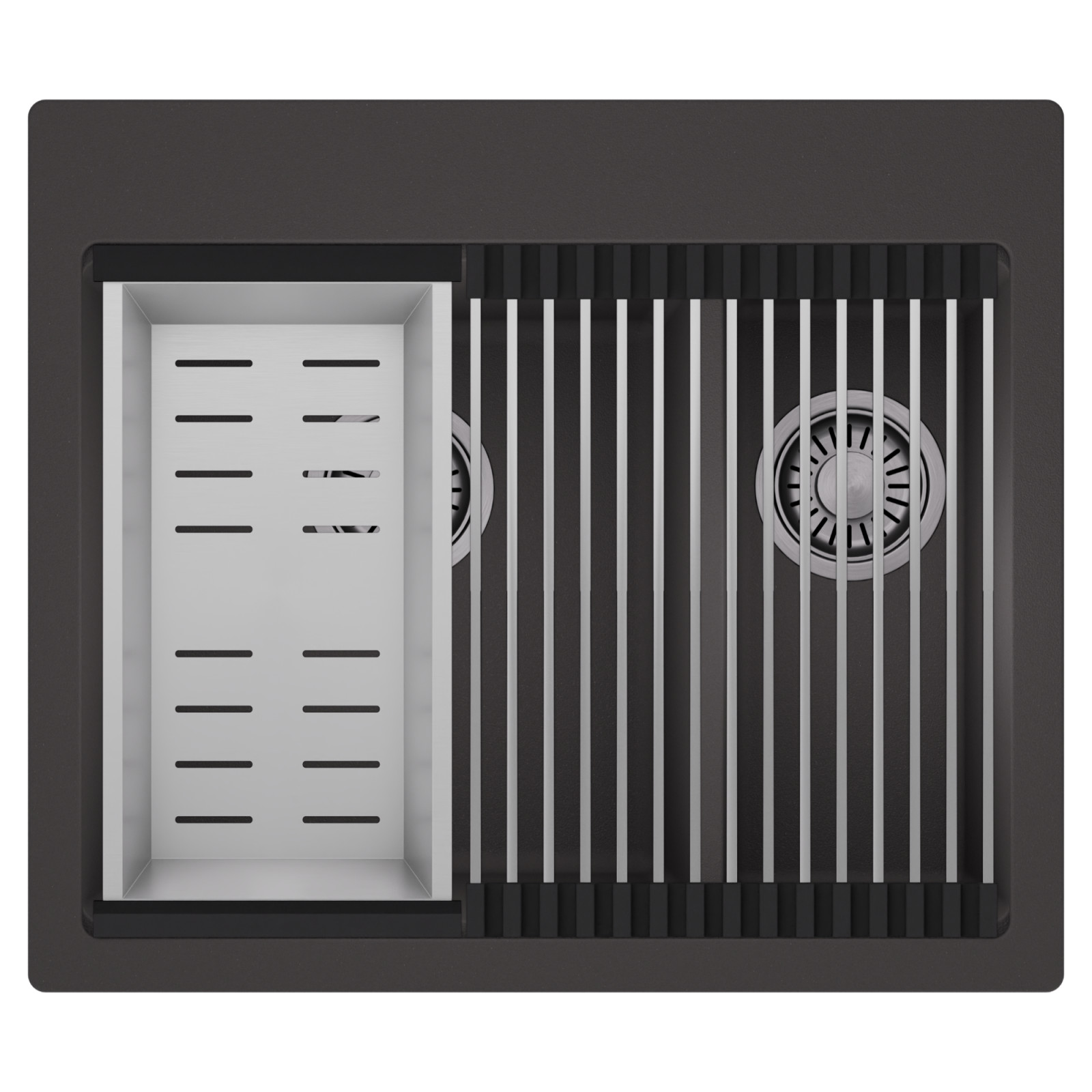 HD Aspen 58 Kétmedencés mosogatótálca szett, csepegtetőráccsal és kosárral, matt antracit