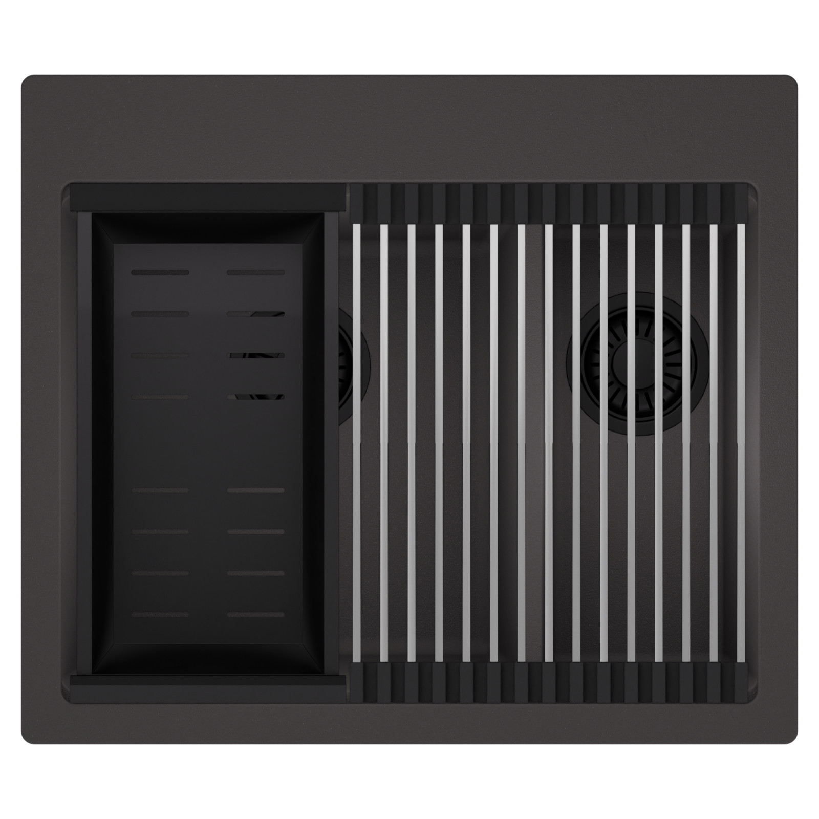 HD Aspen 58 Kétmedencés mosogatótálca szett, csepegtetőráccsal és kosárral, matt antracit