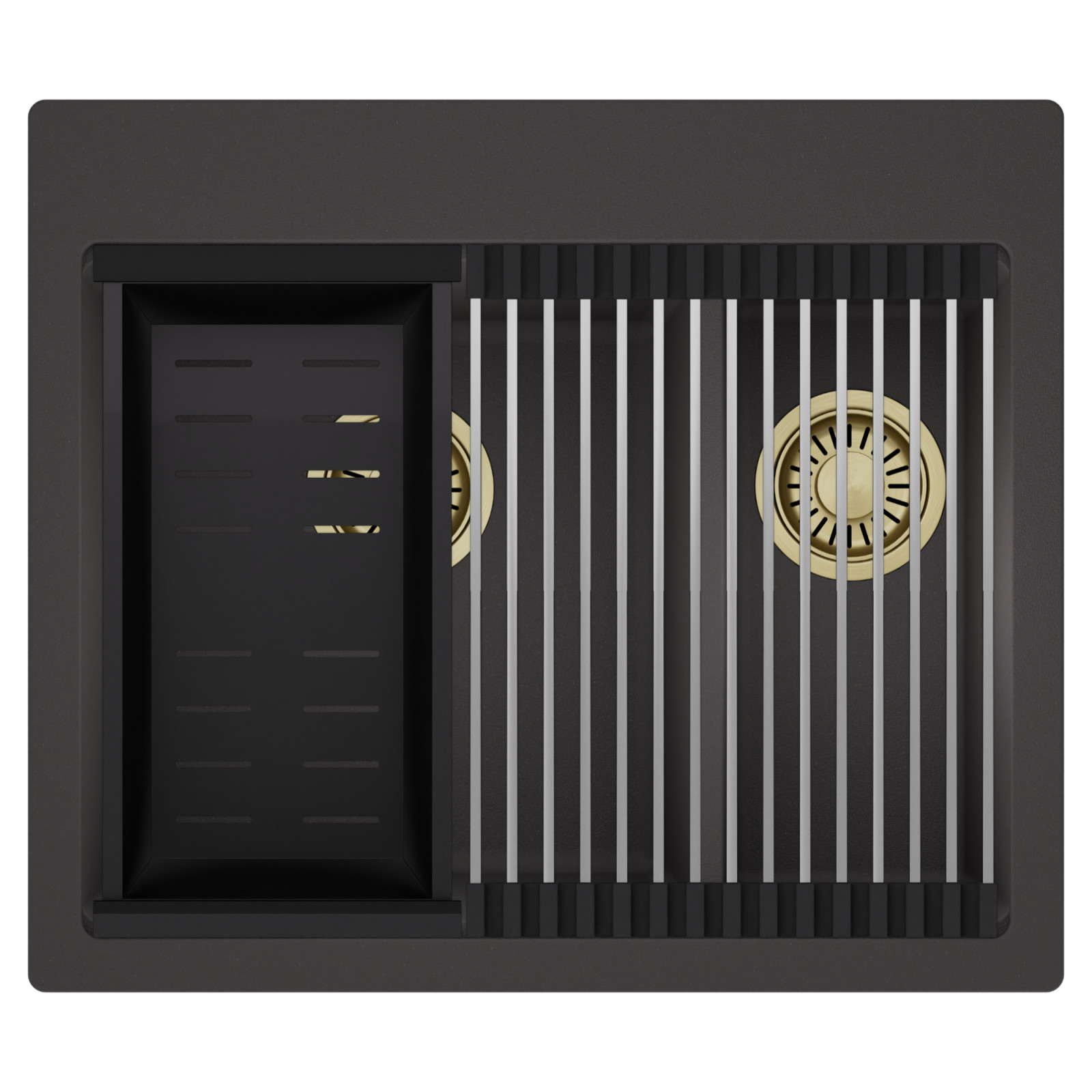HD Aspen 58 Kétmedencés mosogatótálca szett, csepegtetőráccsal és kosárral, matt antracit