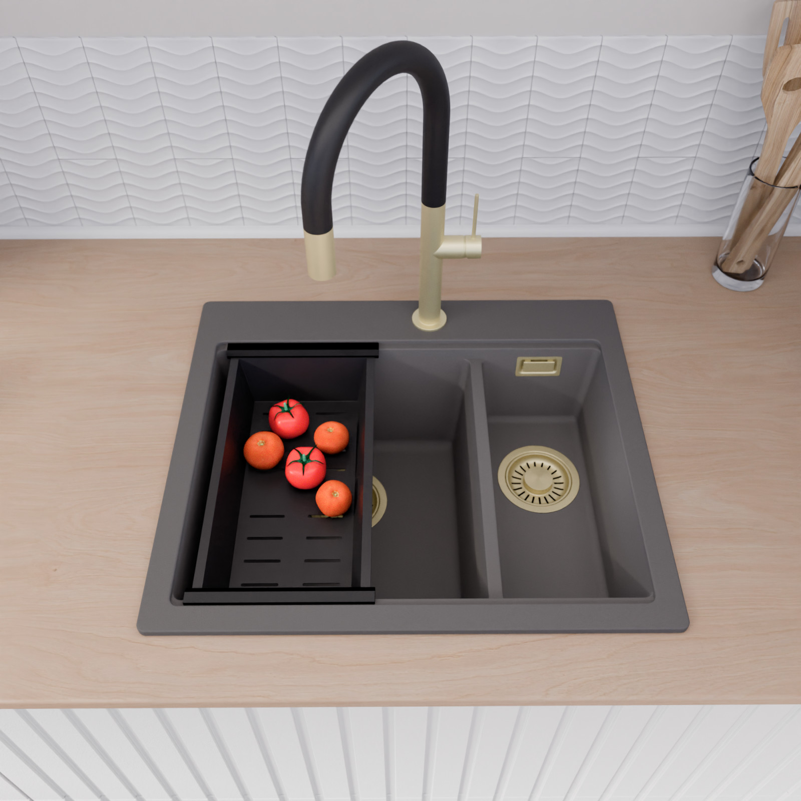 A mosogató prémium minőségű gránit kompozitból készült. Letisztult megjelenése mellett rendkívül praktikus, így bármilyen stílusú konyhába harmonikusan illeszkedik. A strapabíró gránit anyag hosszú távon is megbízható használatot garantál.