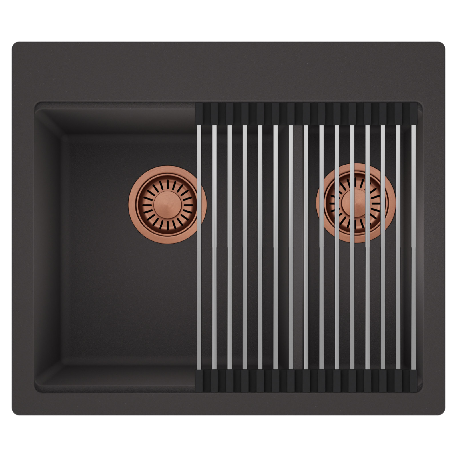 HD Aspen 58 Kétmedencés mosogatótálca szett, csepegtetőráccsal, matt antracit