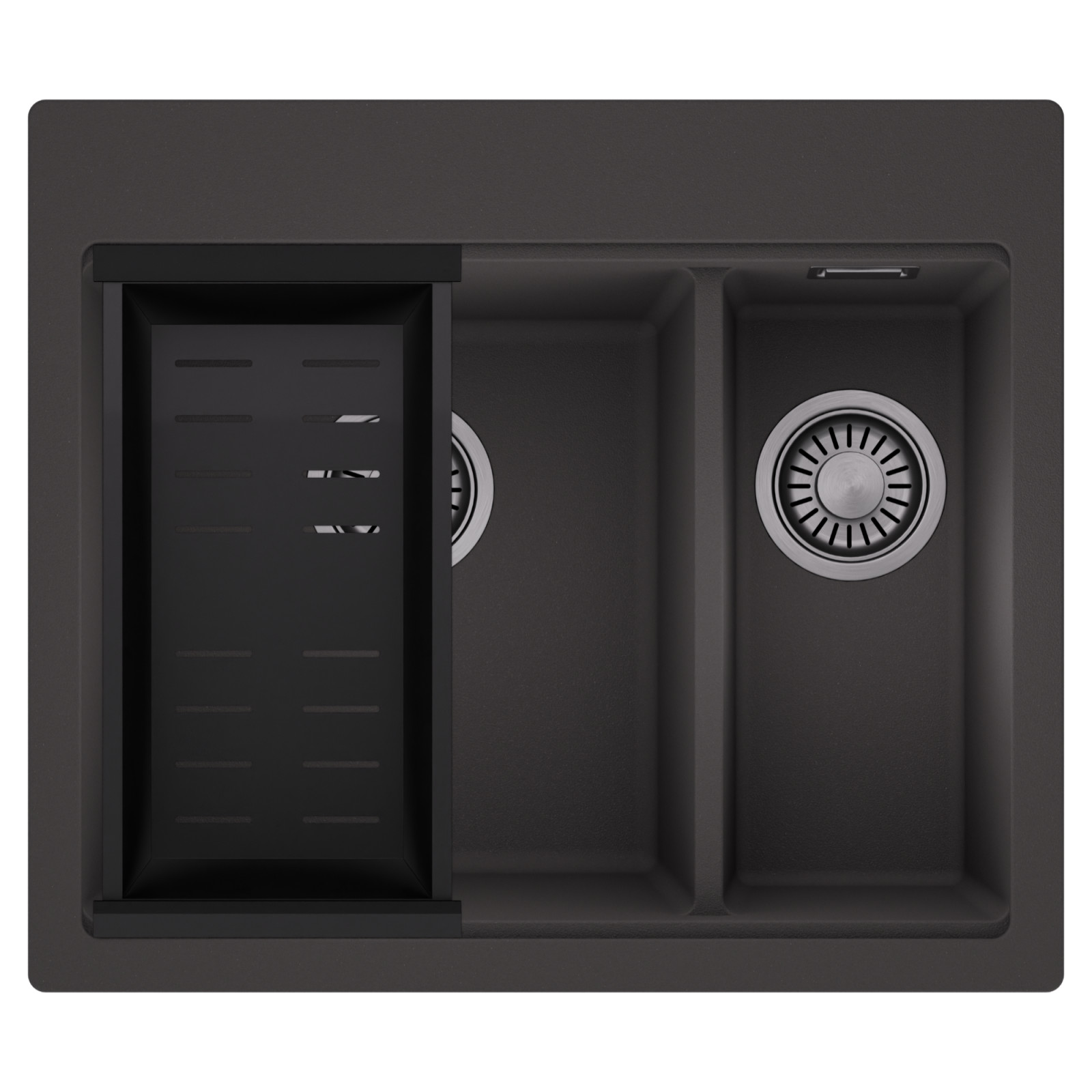 HD Aspen 58 Kétmedencés mosogatótálca szett, csepegtetőkosárral, matt antracit