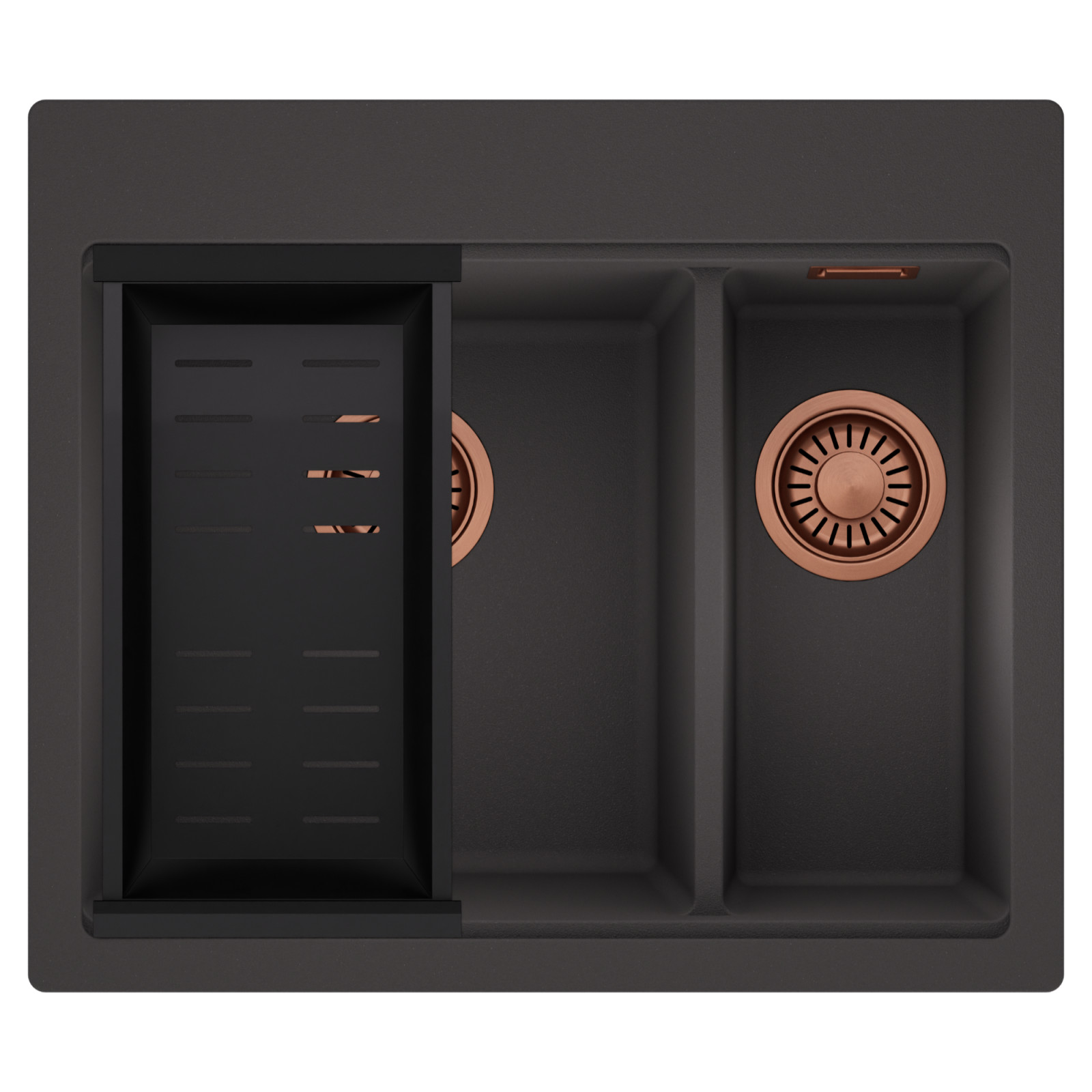HD Aspen 58 Kétmedencés mosogatótálca szett, csepegtetőkosárral, matt antracit