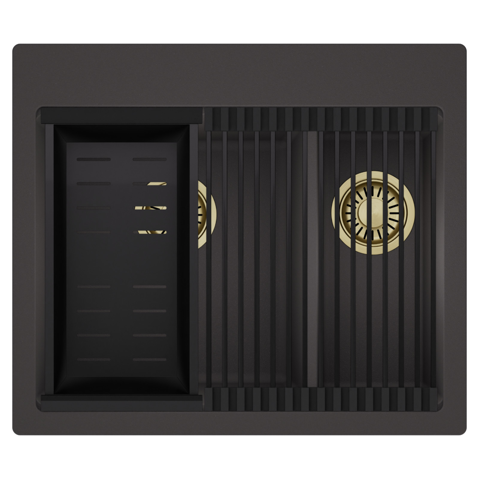 HD Aspen 58 Kétmedencés mosogatótálca szett, csepegtetőráccsal és kosárral, matt antracit