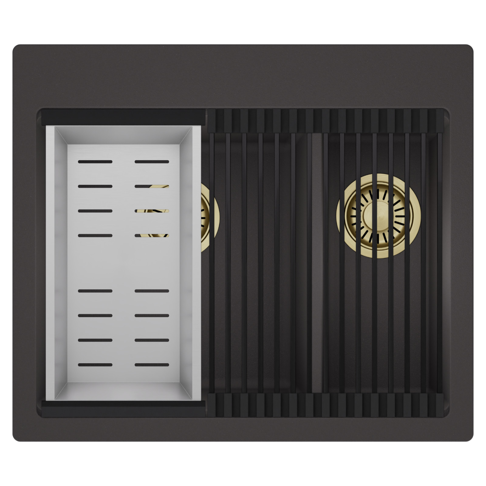 HD Aspen 58 Kétmedencés mosogatótálca szett, csepegtetőráccsal és kosárral, matt antracit