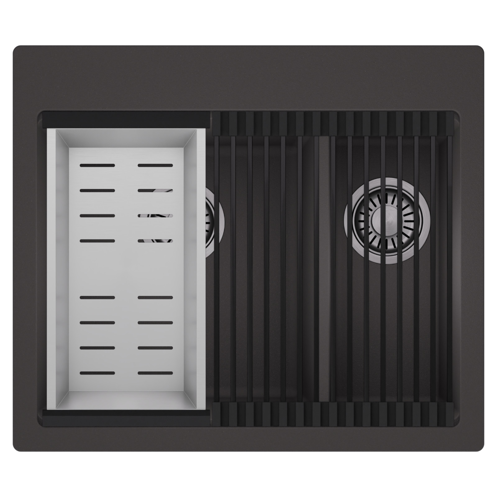 HD Aspen 58 Kétmedencés mosogatótálca szett, csepegtetőráccsal és kosárral, matt antracit