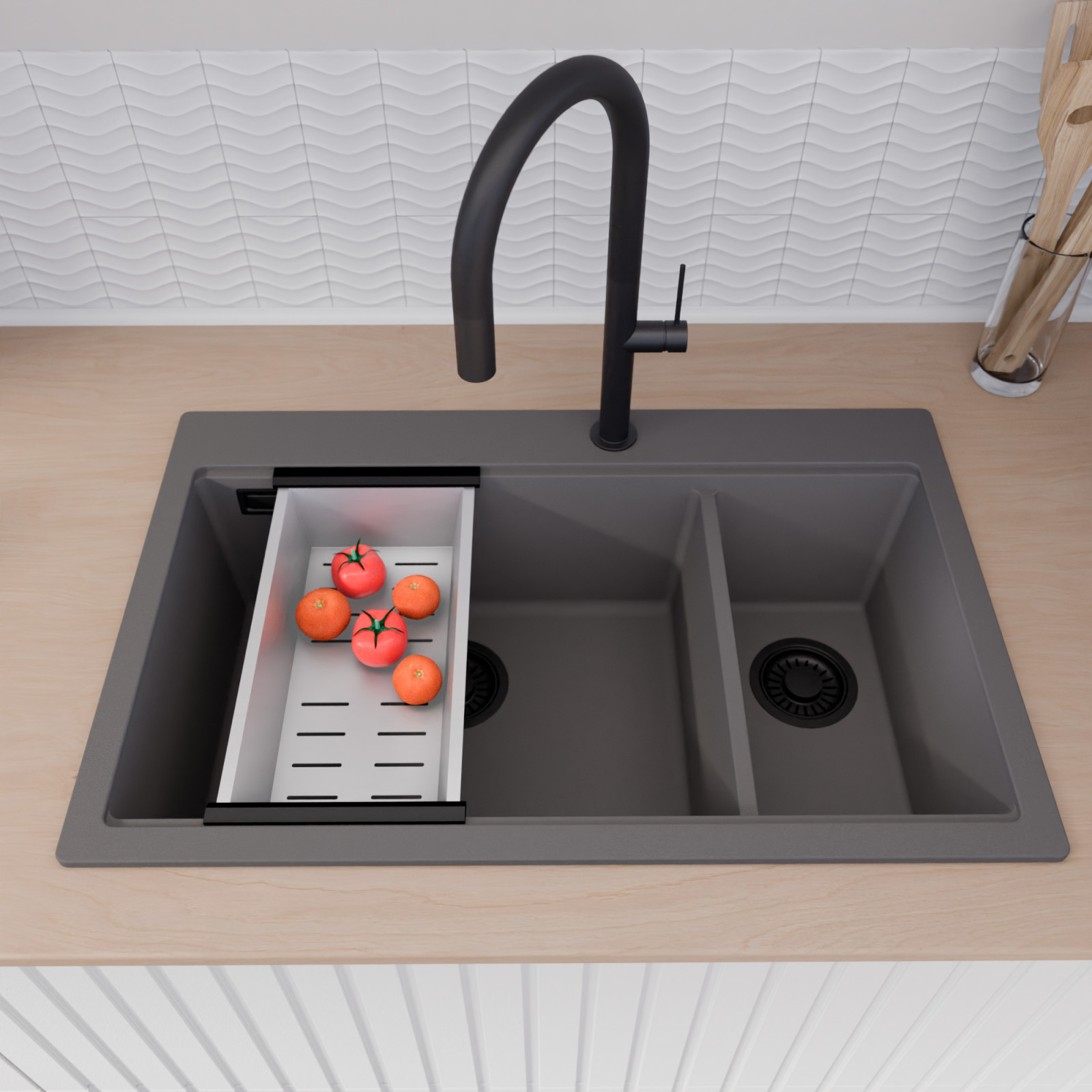 A mosogató prémium minőségű gránit kompozitból készült. Letisztult megjelenése mellett rendkívül praktikus, így bármilyen stílusú konyhába harmonikusan illeszkedik. A strapabíró gránit anyag hosszú távon is megbízható használatot garantál.