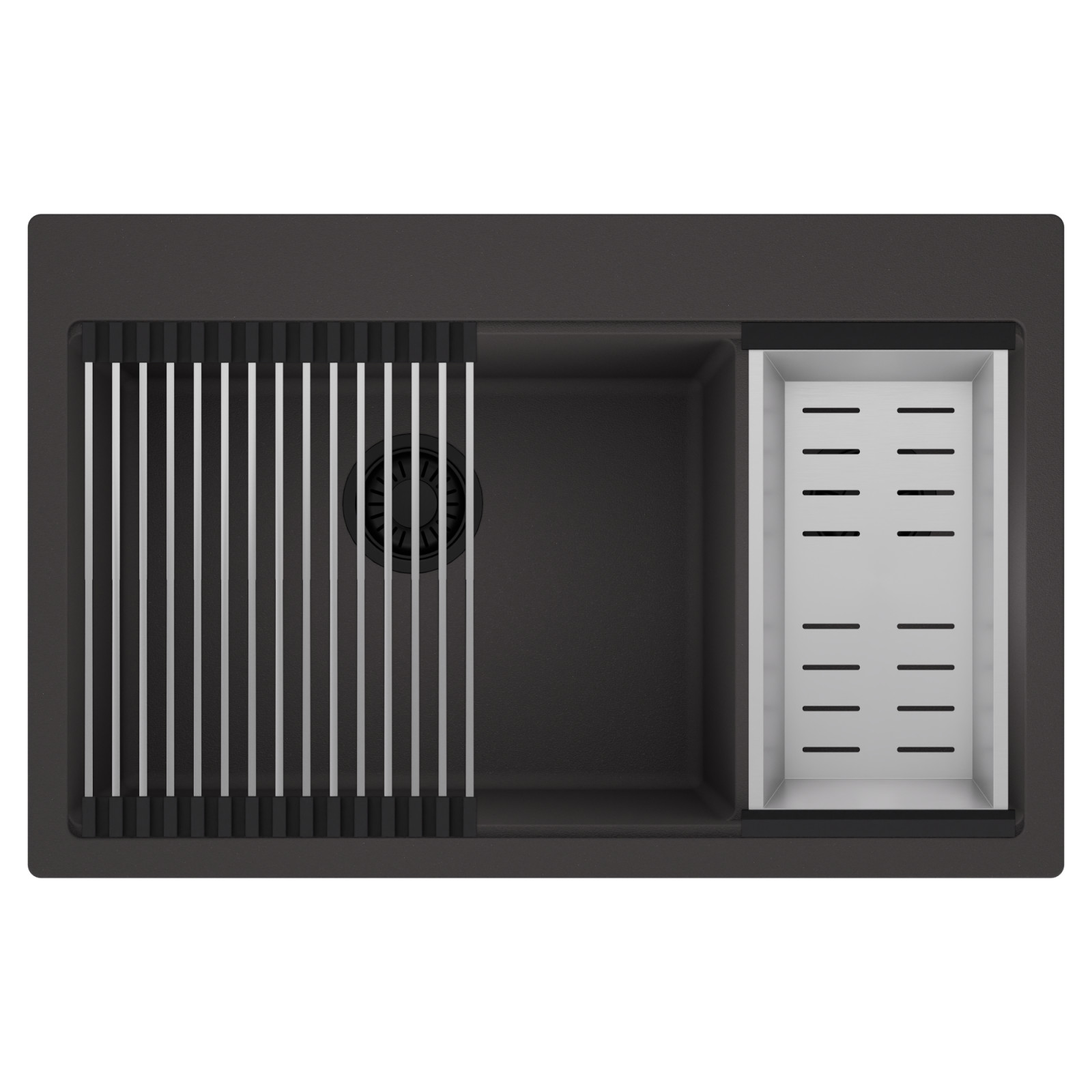 HD Aspen 78 Kétmedencés mosogatótálca szett, csepegtetőráccsal és kosárral, matt antracit