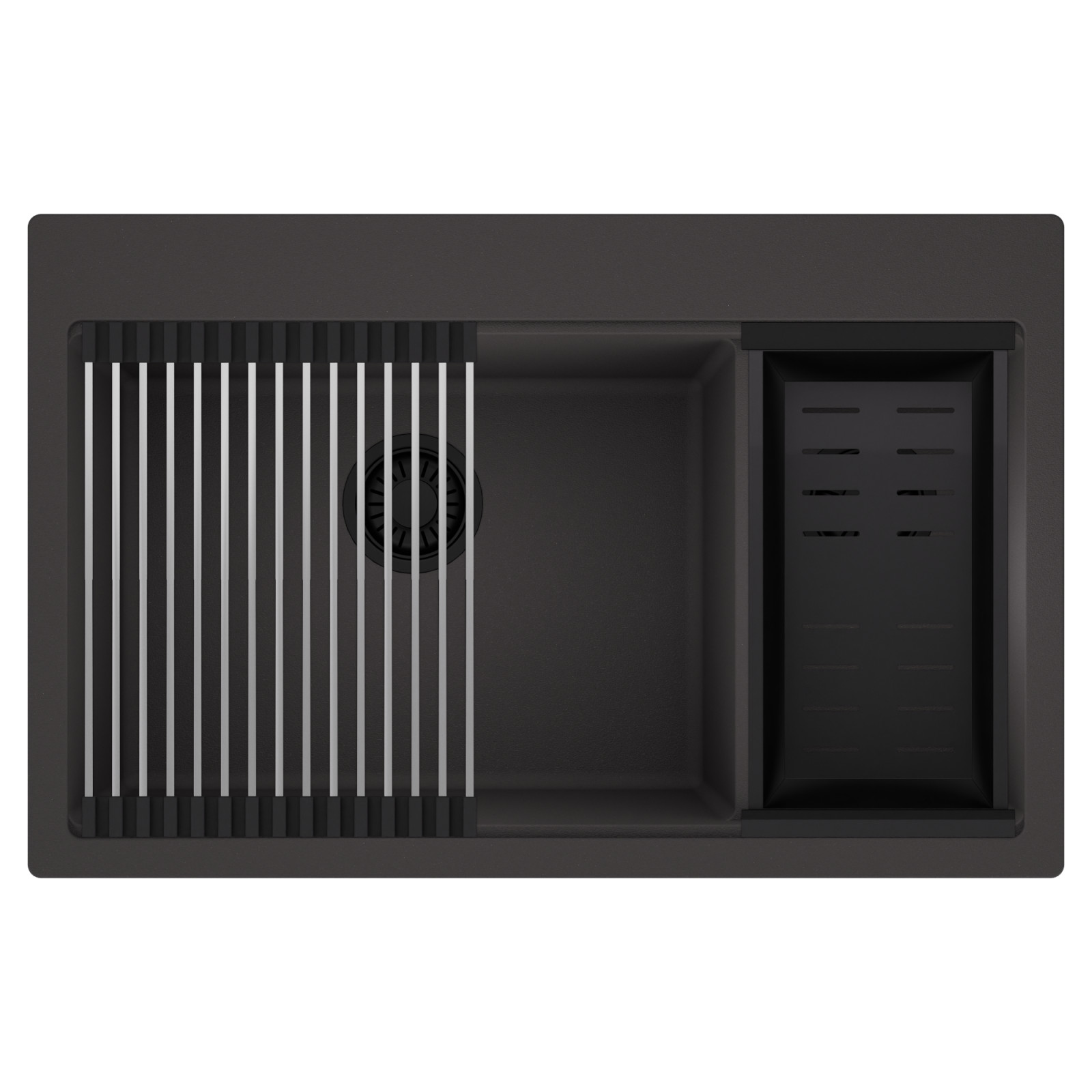 HD Aspen 78 Kétmedencés mosogatótálca szett, csepegtetőráccsal és kosárral, matt antracit