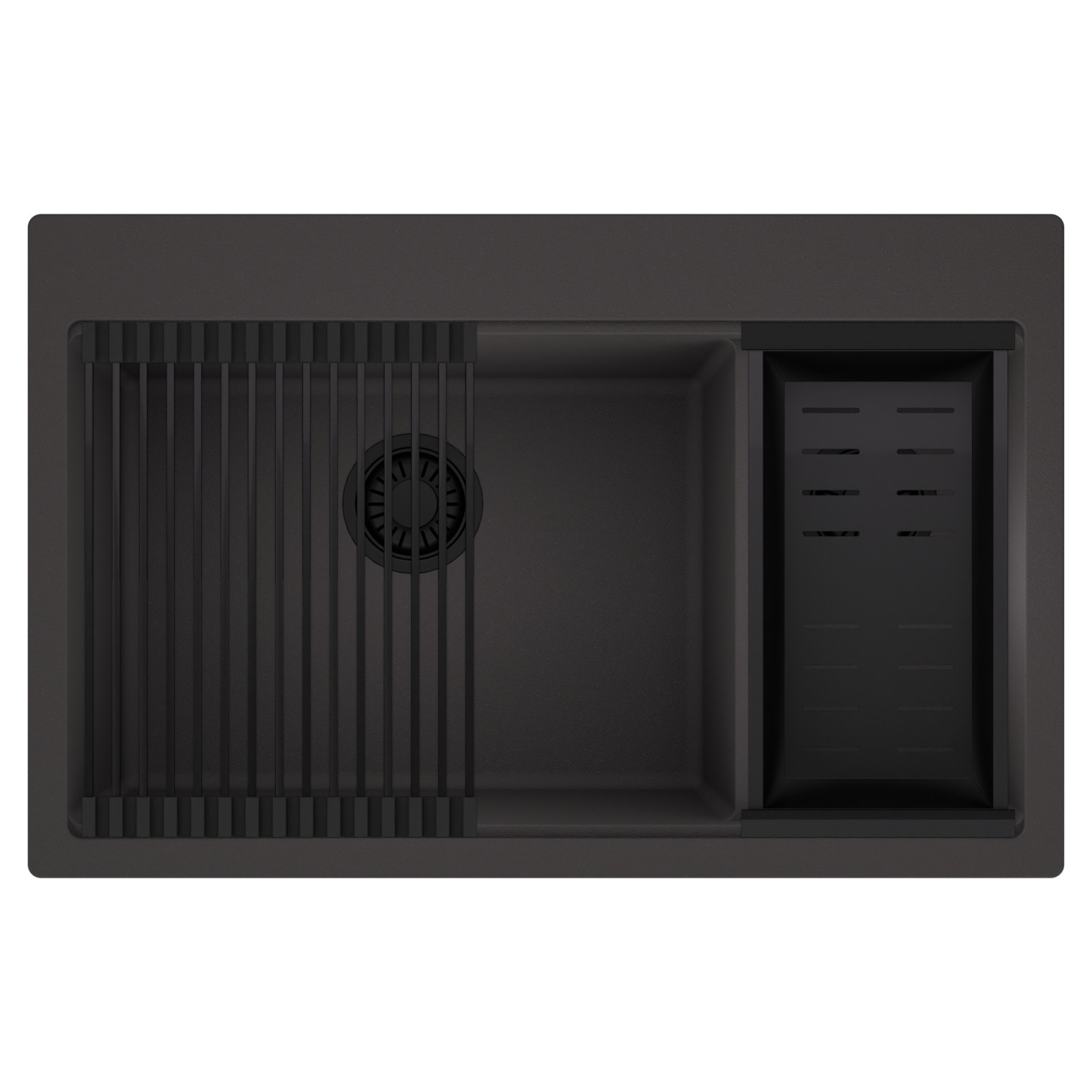 HD Aspen 78 Kétmedencés mosogatótálca szett, csepegtetőráccsal és kosárral, matt antracit