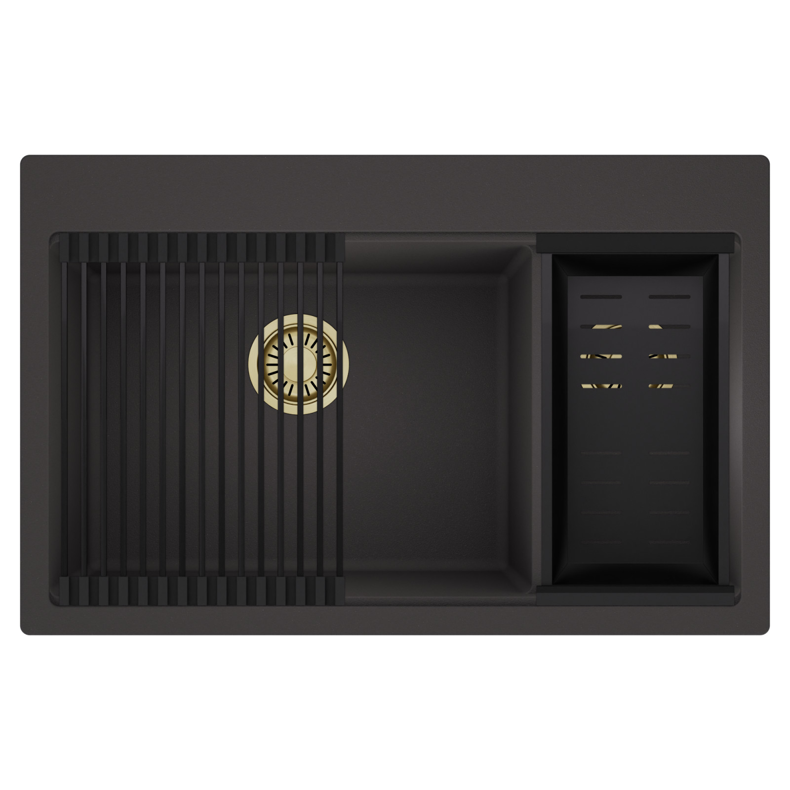 HD Aspen 78 Kétmedencés mosogatótálca szett, csepegtetőráccsal és kosárral, matt antracit
