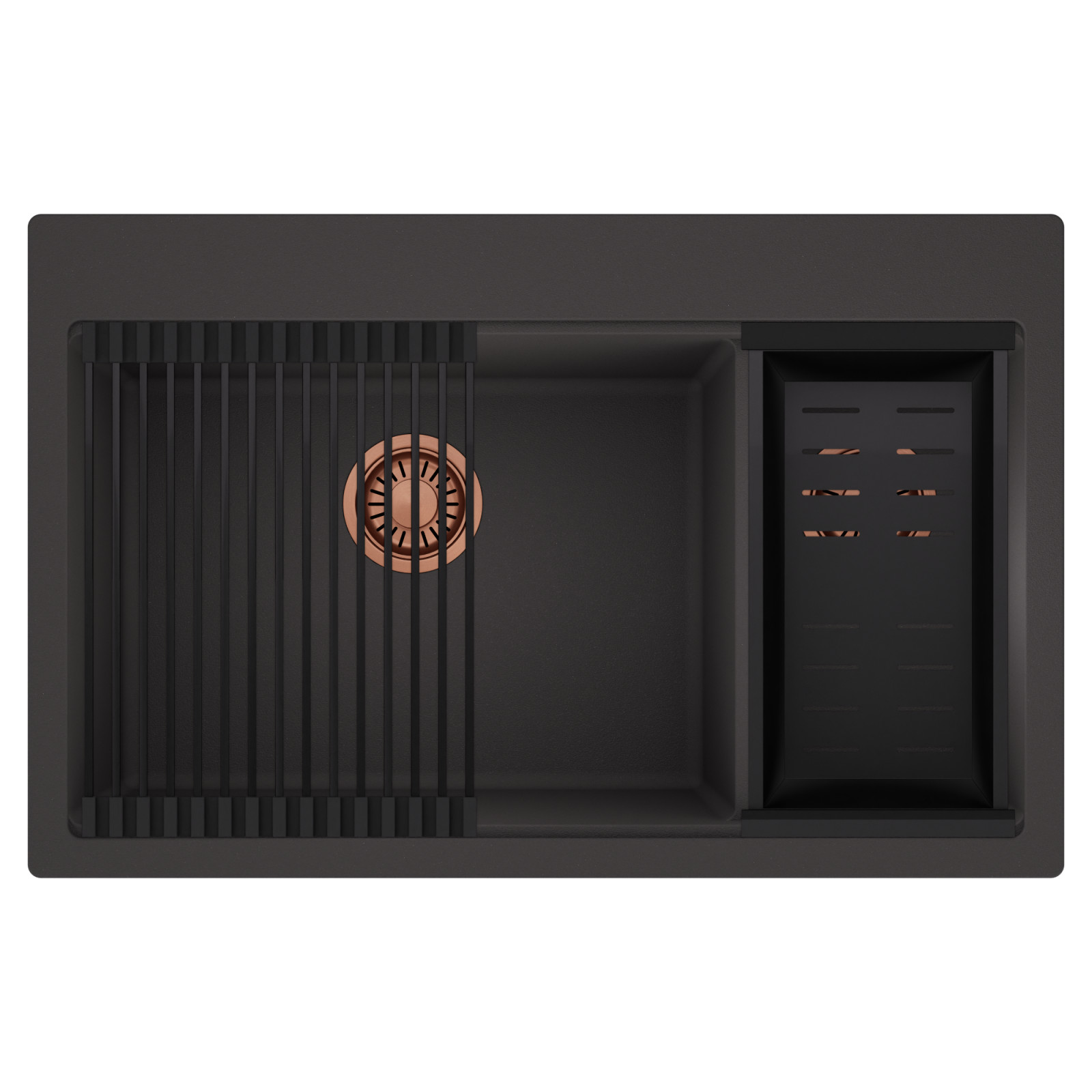 HD Aspen 78 Kétmedencés mosogatótálca szett, csepegtetőráccsal és kosárral, matt antracit