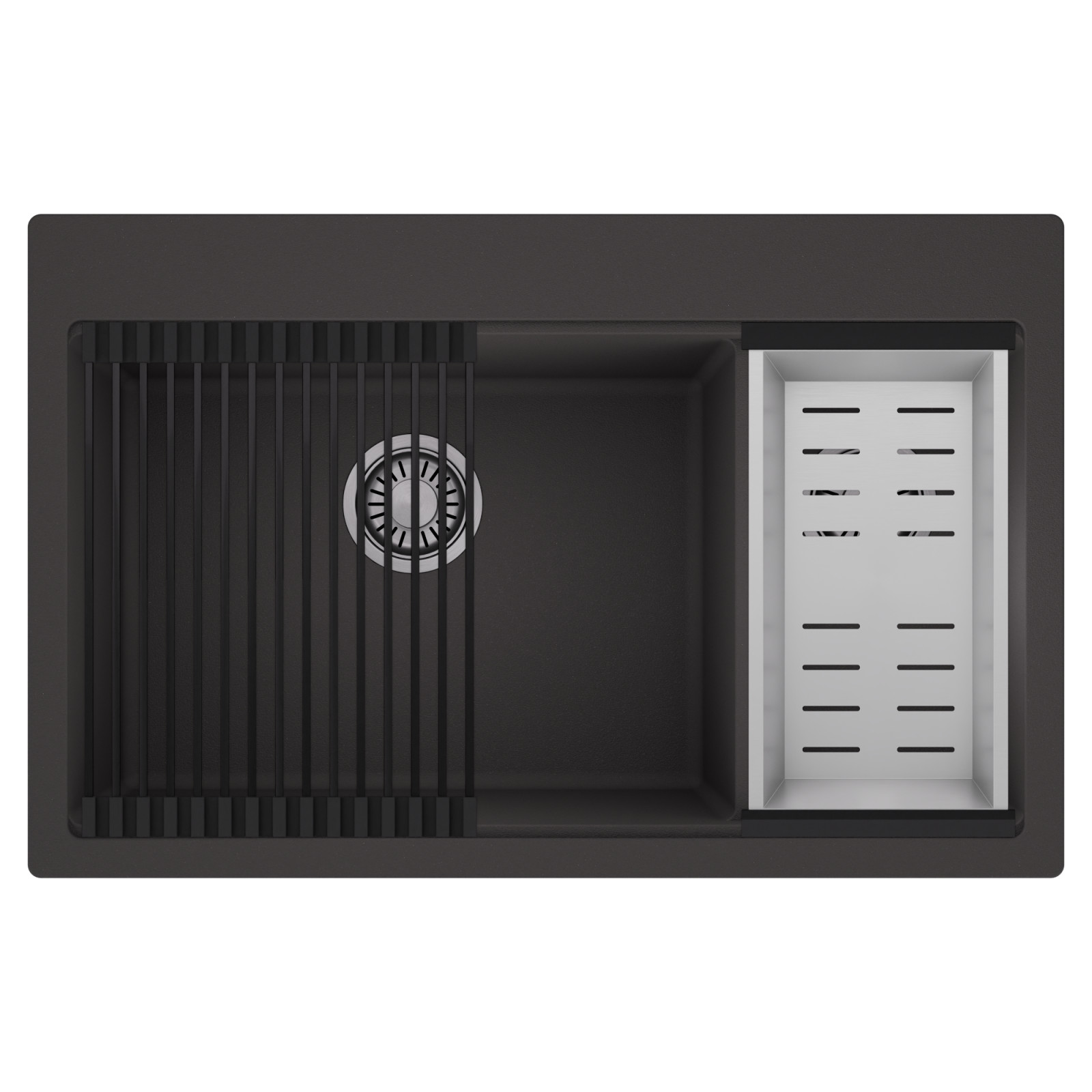 HD Aspen 78 Kétmedencés mosogatótálca szett, csepegtetőráccsal és kosárral, matt antracit