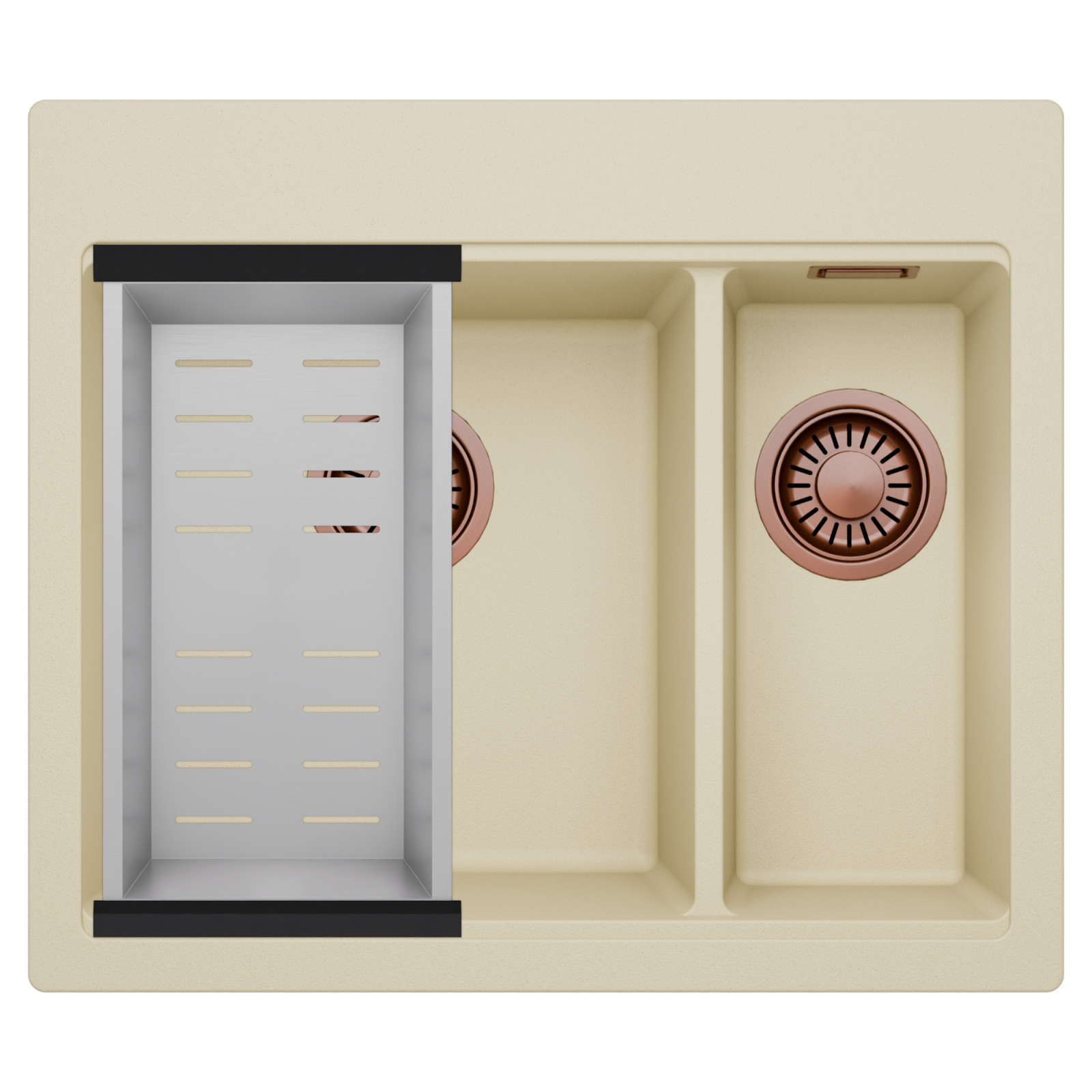 HD Aspen Beige 58 Kétmedencés mosogatótálca szett, csepegtetőkosárral, soft bézs