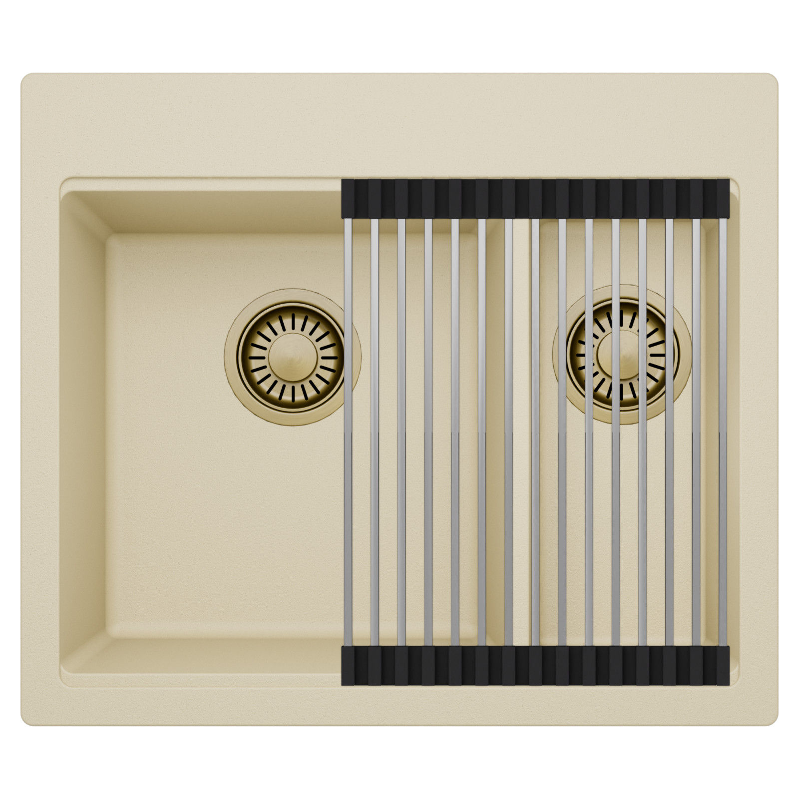 HD Aspen Beige 58 Kétmedencés mosogatótálca szett, csepegtetőráccsal, soft bézs