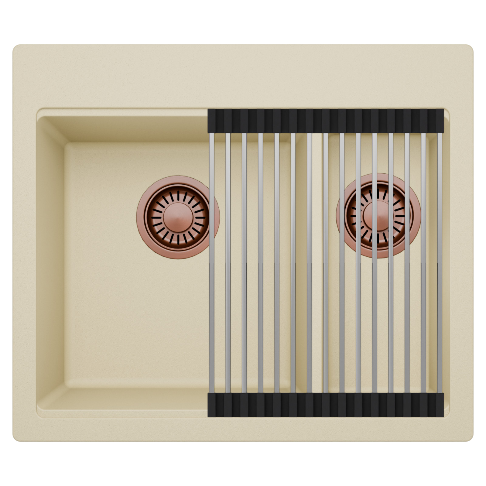 HD Aspen Beige 58 Kétmedencés mosogatótálca szett, csepegtetőráccsal, soft bézs