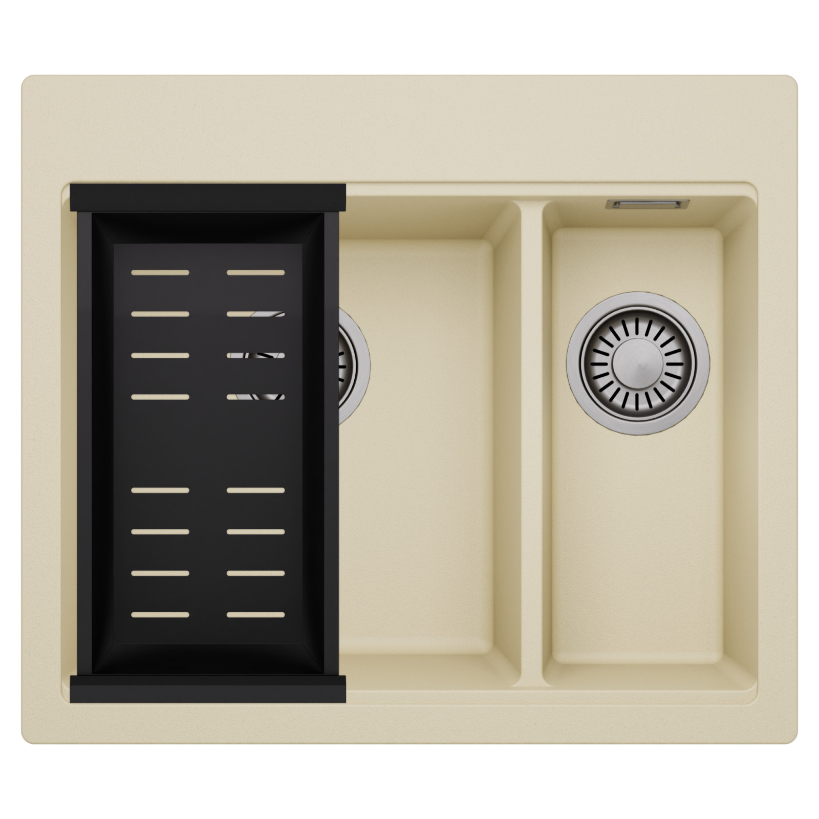 HD Aspen Beige 58 Kétmedencés mosogatótálca szett, csepegtetőkosárral, soft bézs